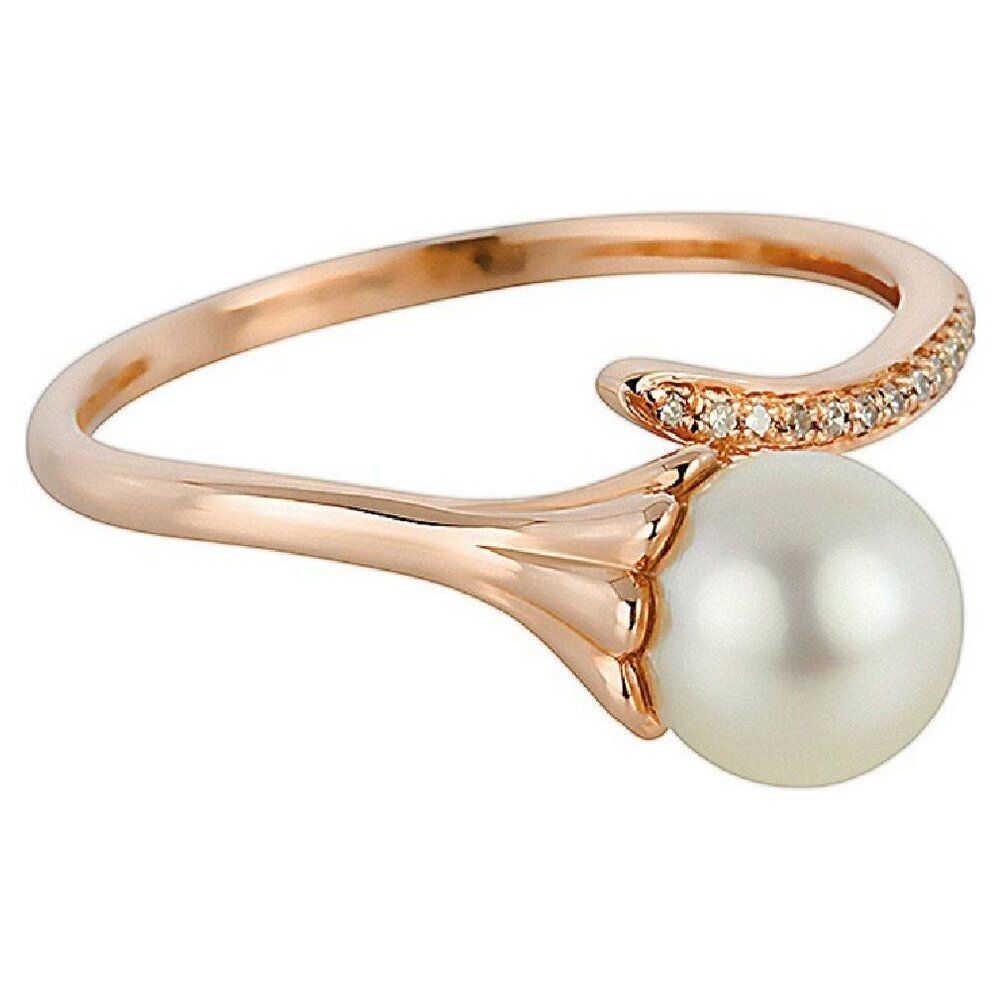 Luna Creation Ring 585/-Rotgold Perle Diamanten 0.03ct VL42-10131