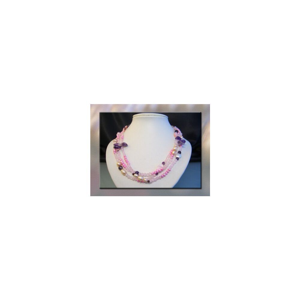 Luna-Pearls - HKS76 - Collier - 925 Silber - Amethyst, Rosenquarz, Perlmutt - 150cm