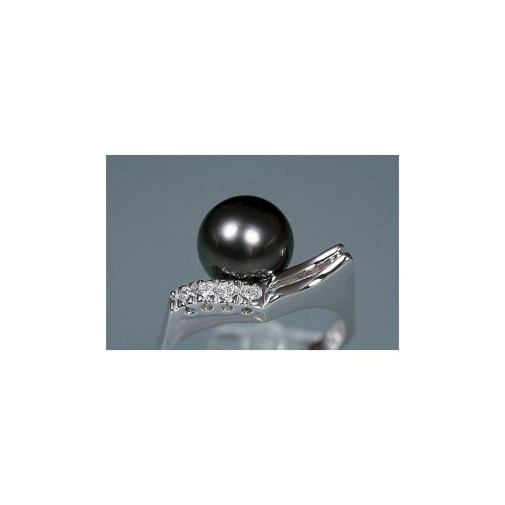 Luna-Pearls - TR0024 - Ring - 585 Weißgold - Tahitiperle 8-9mm - Diamanten 0.08ct