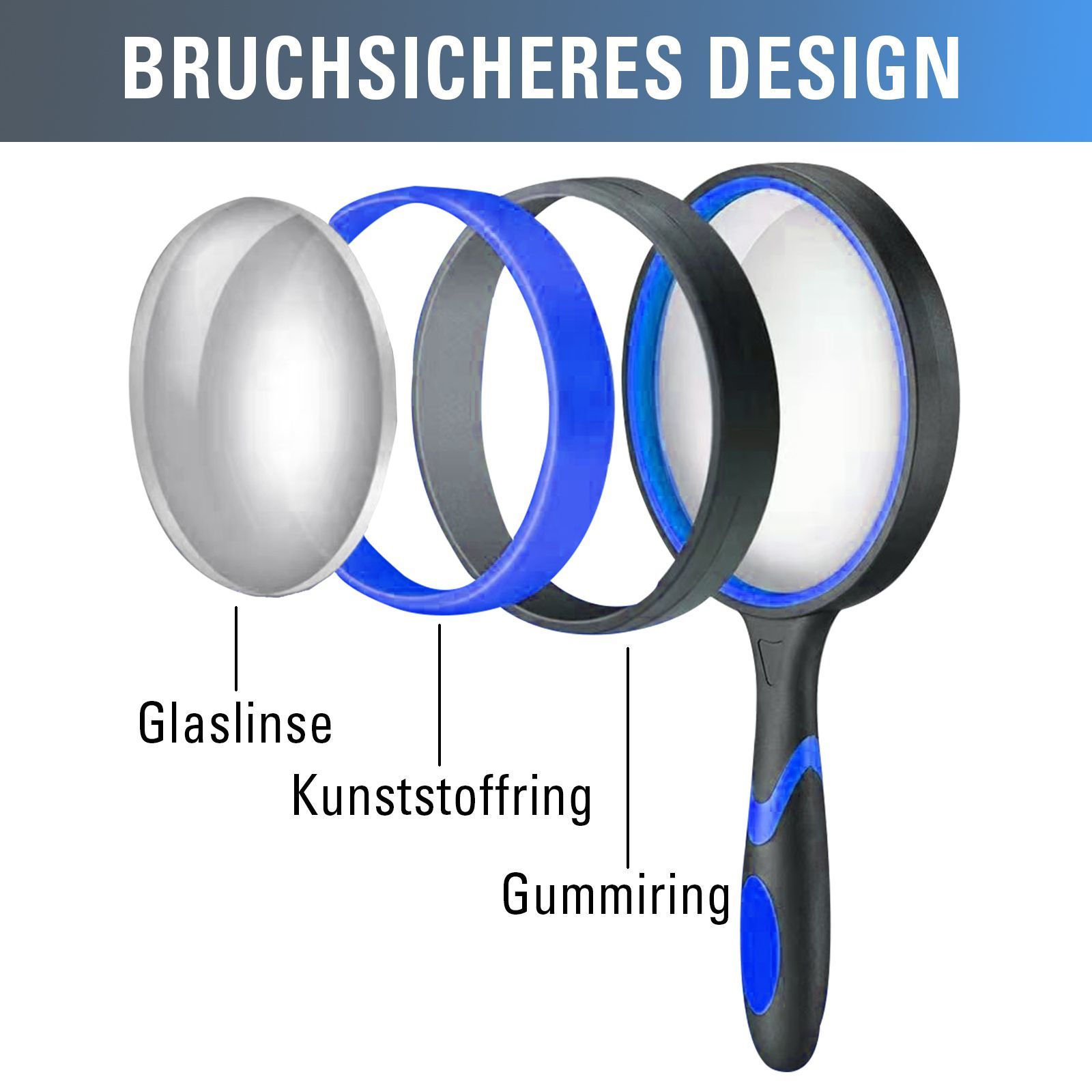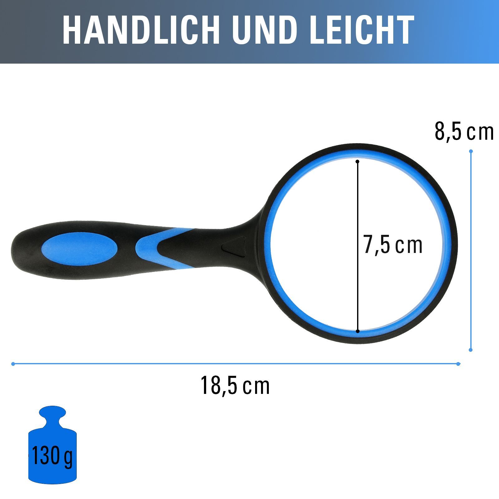 Westcott Lupe 4fach Vergrößerung Echtglas bruchsicher 75 mm Linse blau schwarz groß 4x