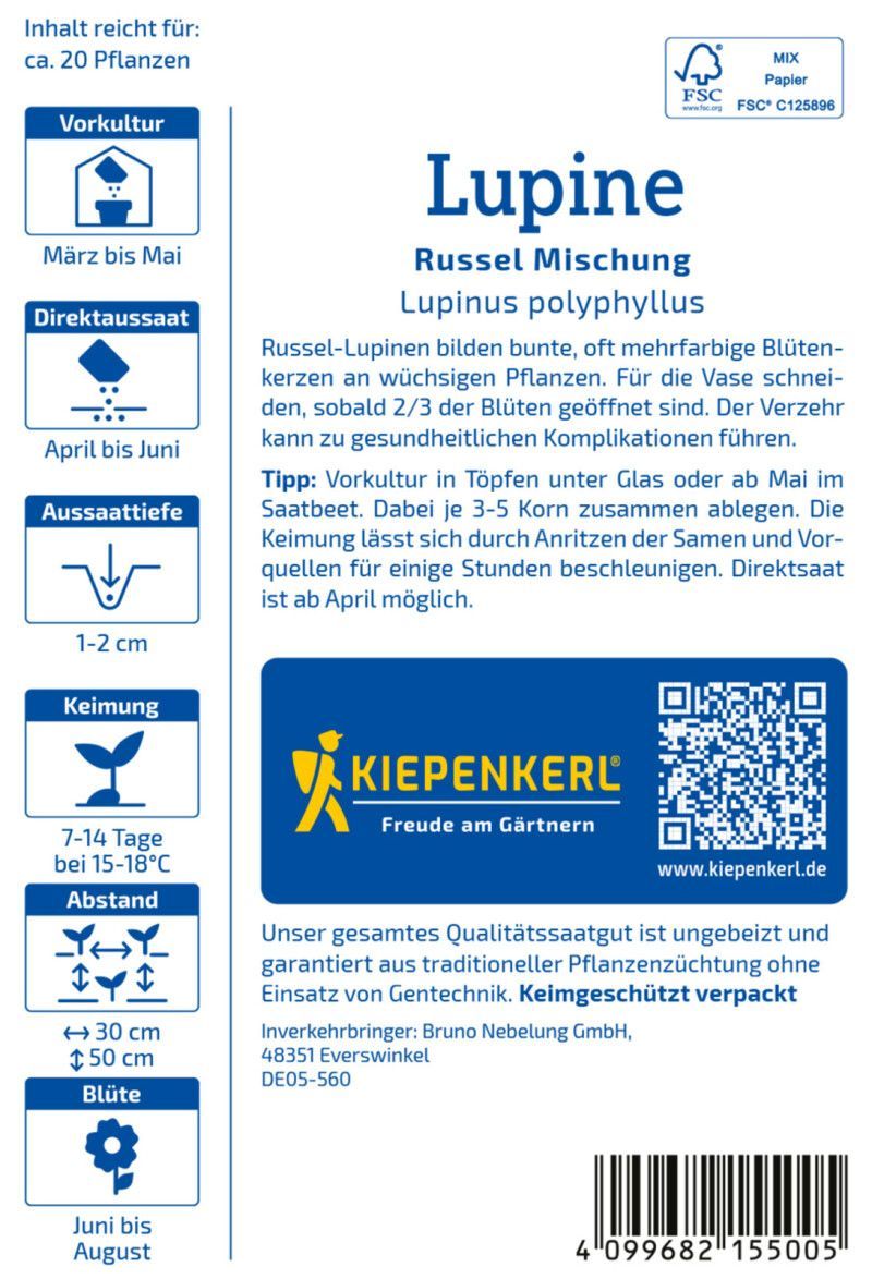 Kiepenkerl Lupine Russel Mischung, Beet- und Schnittstaude - bunte Blütenkerzen - Höhe