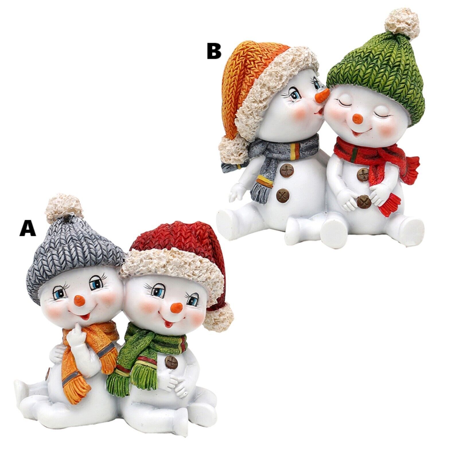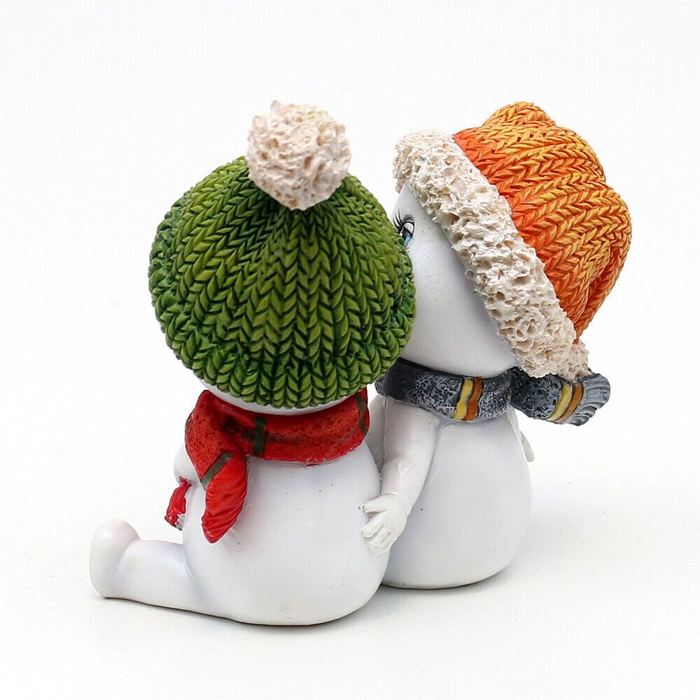 Lustige Schneekinder Paar mit Mütze Küsschen Kuscheln Schneemann Figur Deko