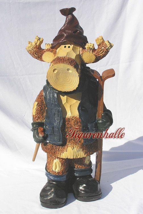 Lustiger Elch Holz Optik Figur Advent Winter Winetrfigur Figur Statue Weihnachten