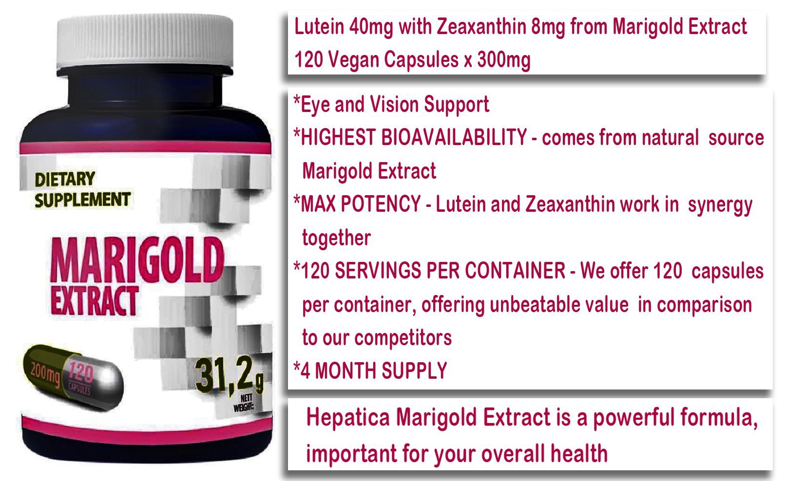 Lutein 40mg with Zeaxanthin 8mg from Marigold Extract 120 Vegan Caps