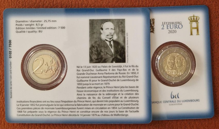 Luxemburg 2 Euro Münze Coincard 2020 Nassau