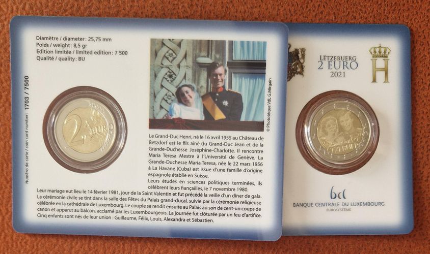 Luxemburg 2 Euro Münze Coincard 2021 Henri
