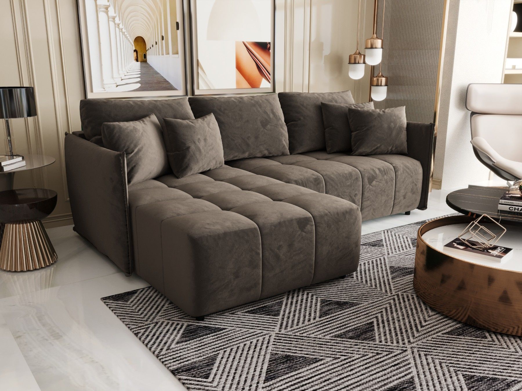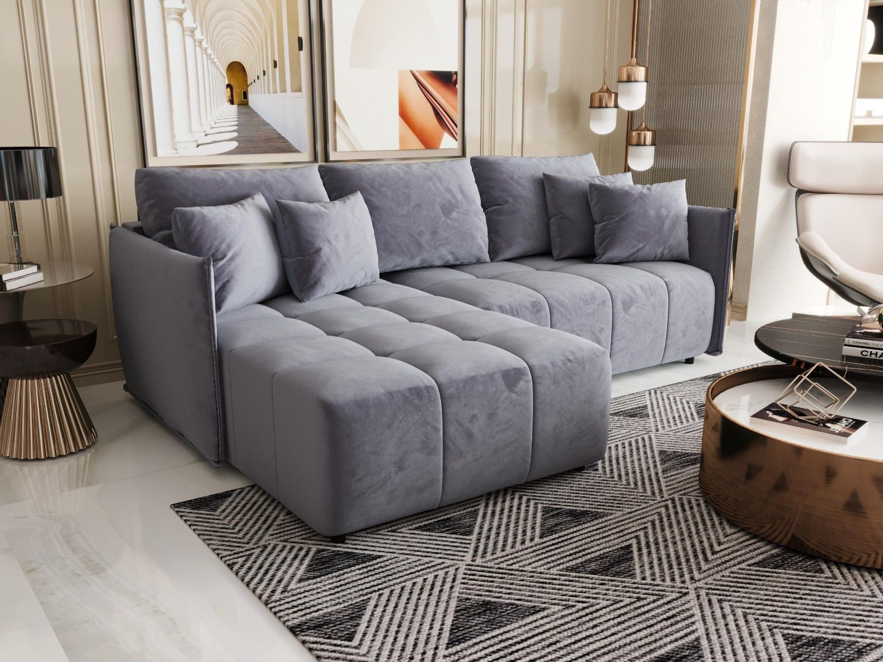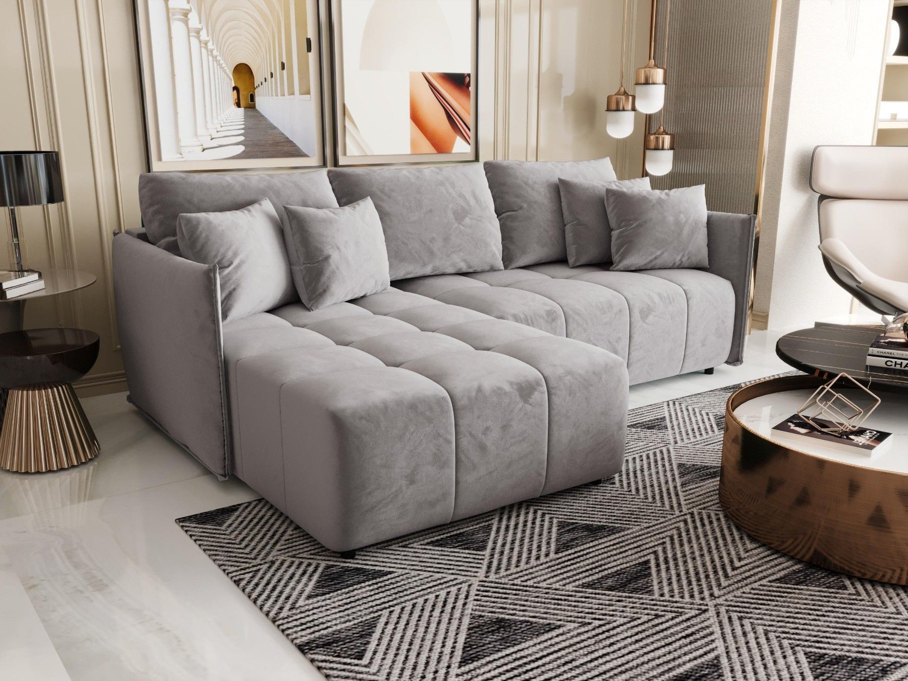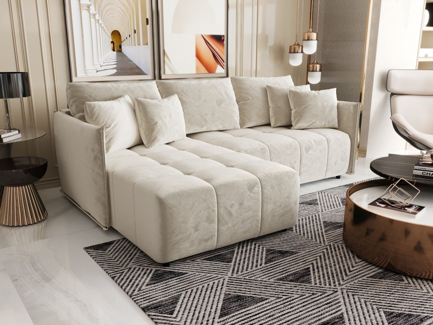 LUXKOR24 Ecksofa WIKI CORD Sofa Schlafunktion mit Bettkasten