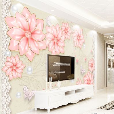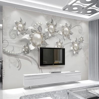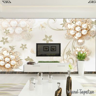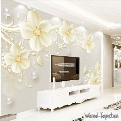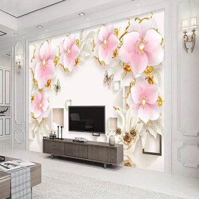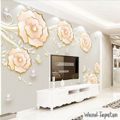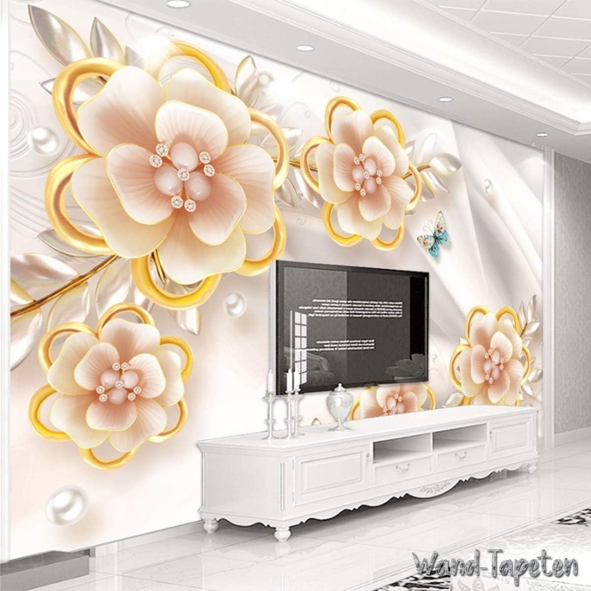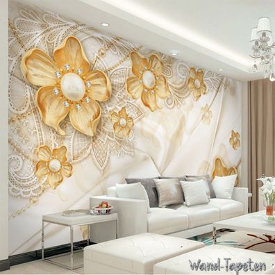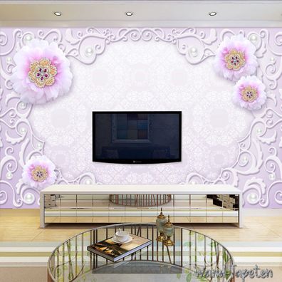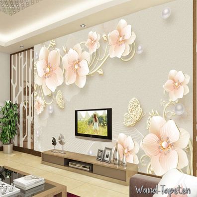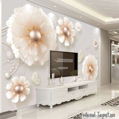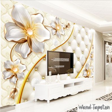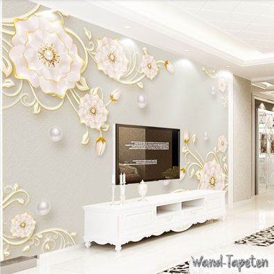Luxuriöse 3D Schmuckblumen Tapete - TV & Wohnzimmer Wanddeko 7221