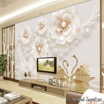 • Vlies Fototapete Wandtapete Wandbilder 3D Effekt Schmuckblume Schwan 9510