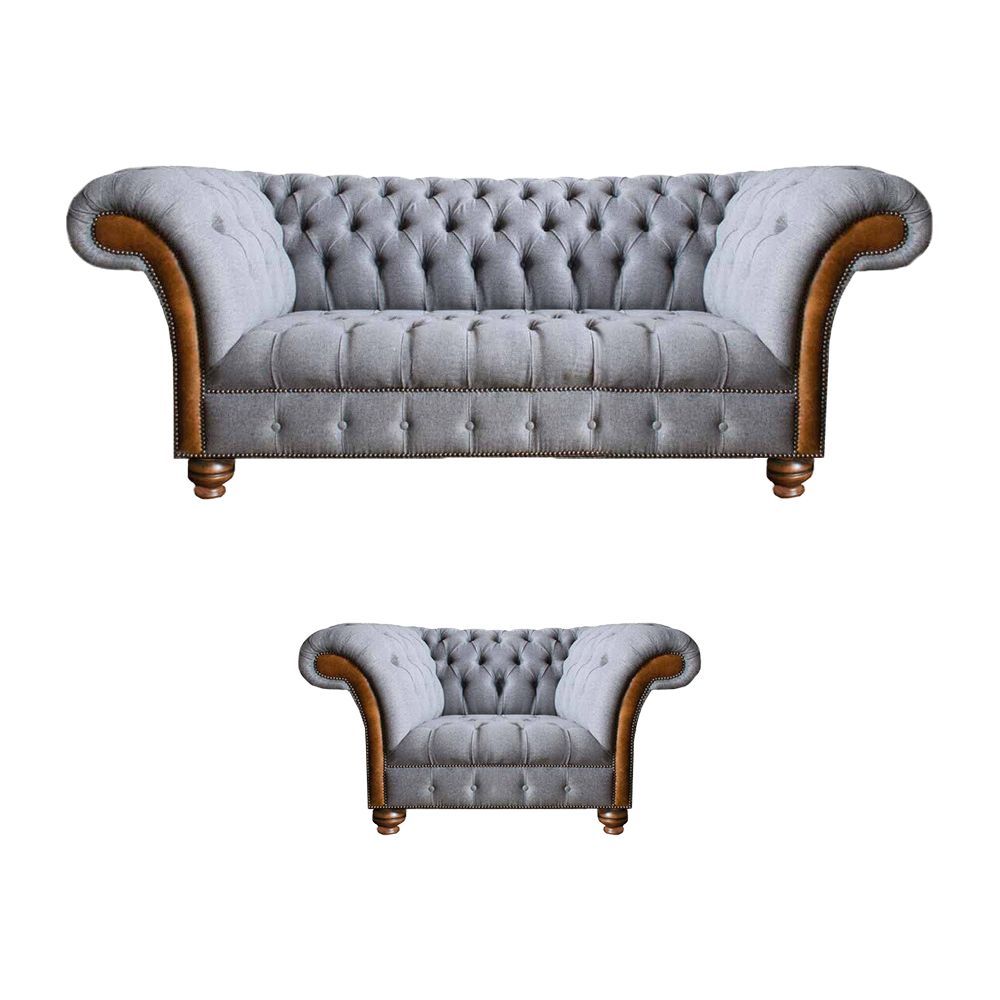 Luxuriöse Chesterfield Hellgraue Sofagarnitur Polstersofas Edler Sessel