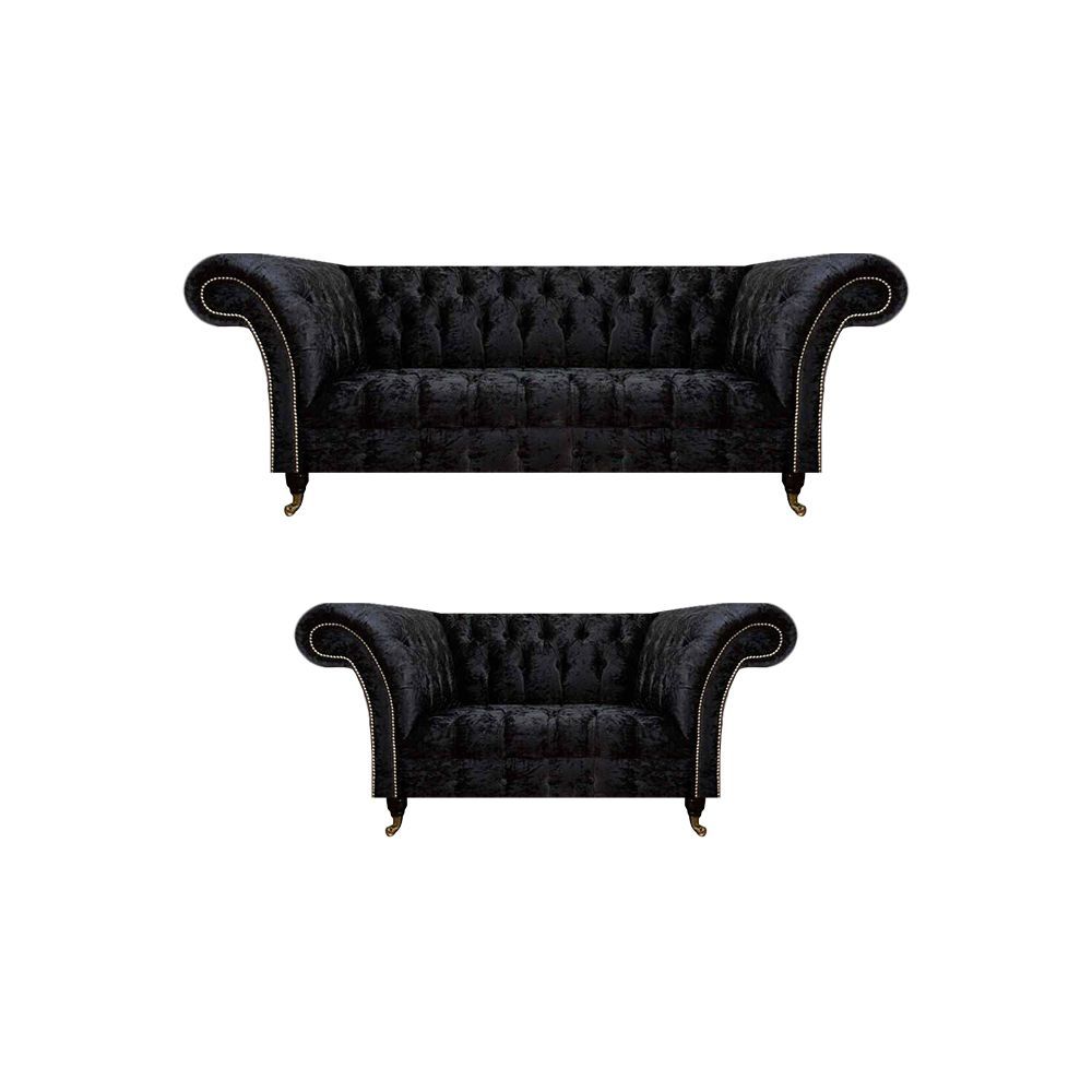 Luxuriöse Chesterfield Schwarze Textil Sitzgarnitur Wohnzimmer Möbel