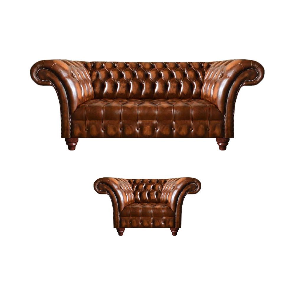 Luxuriöse Chesterfield Wohnzimmer Sitzgarnitur Ledersessel 3-Sitzer 2tlg