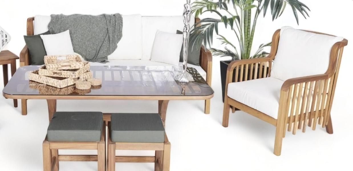 Luxuriöse Gartenmöbel Set Sitzgruppe 3 + 1 Holz Gartenhocker Tisch Möbel