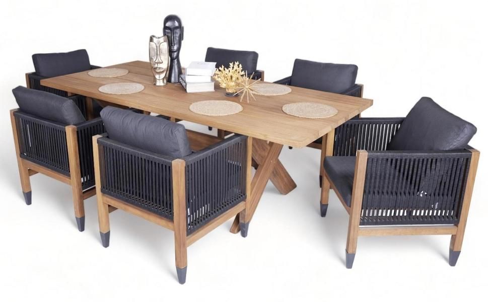Luxuriöse Komplett Set Esstisch Holz Stilvoller 6X Stühle Textil Gartenmöbel
