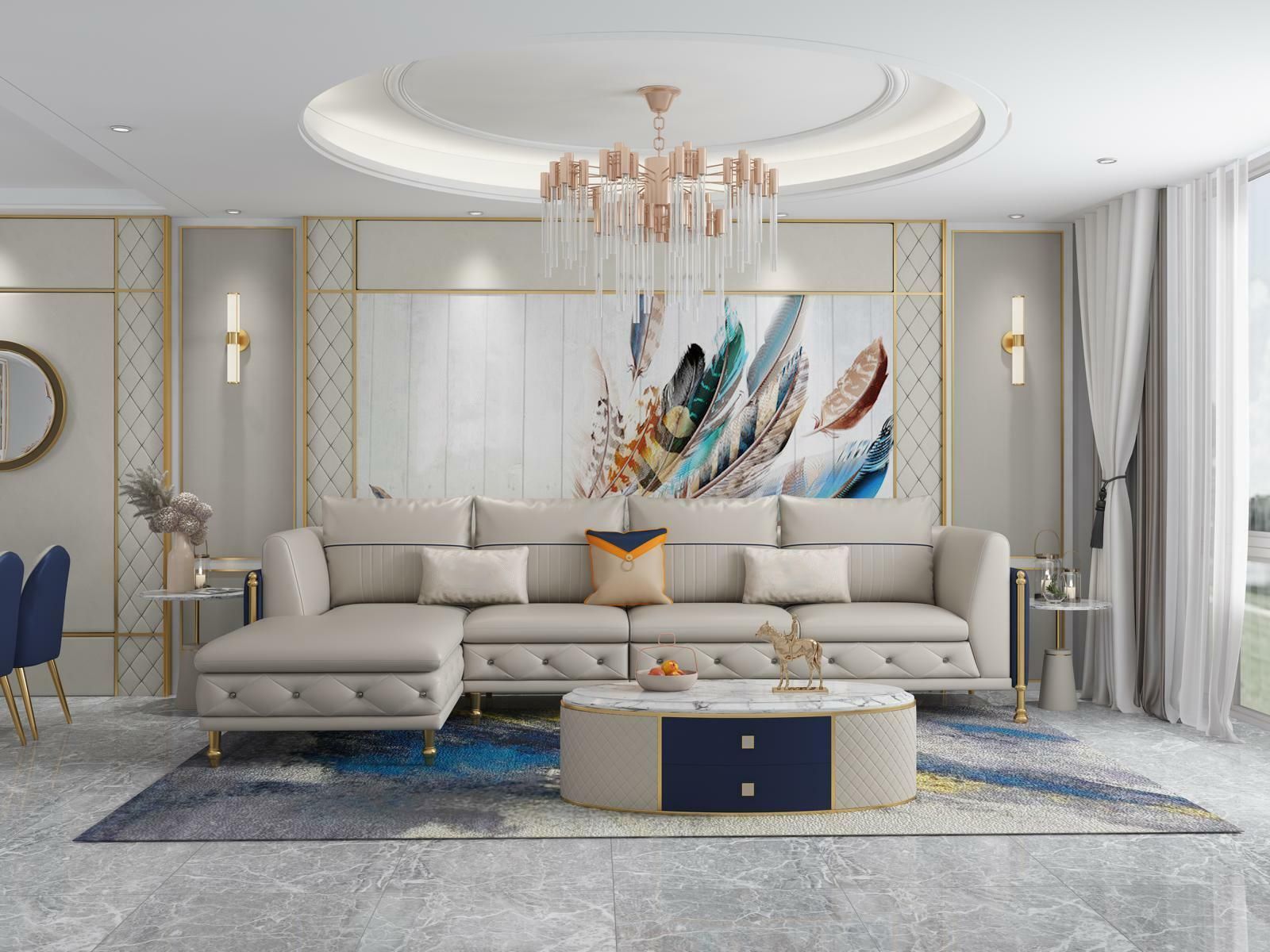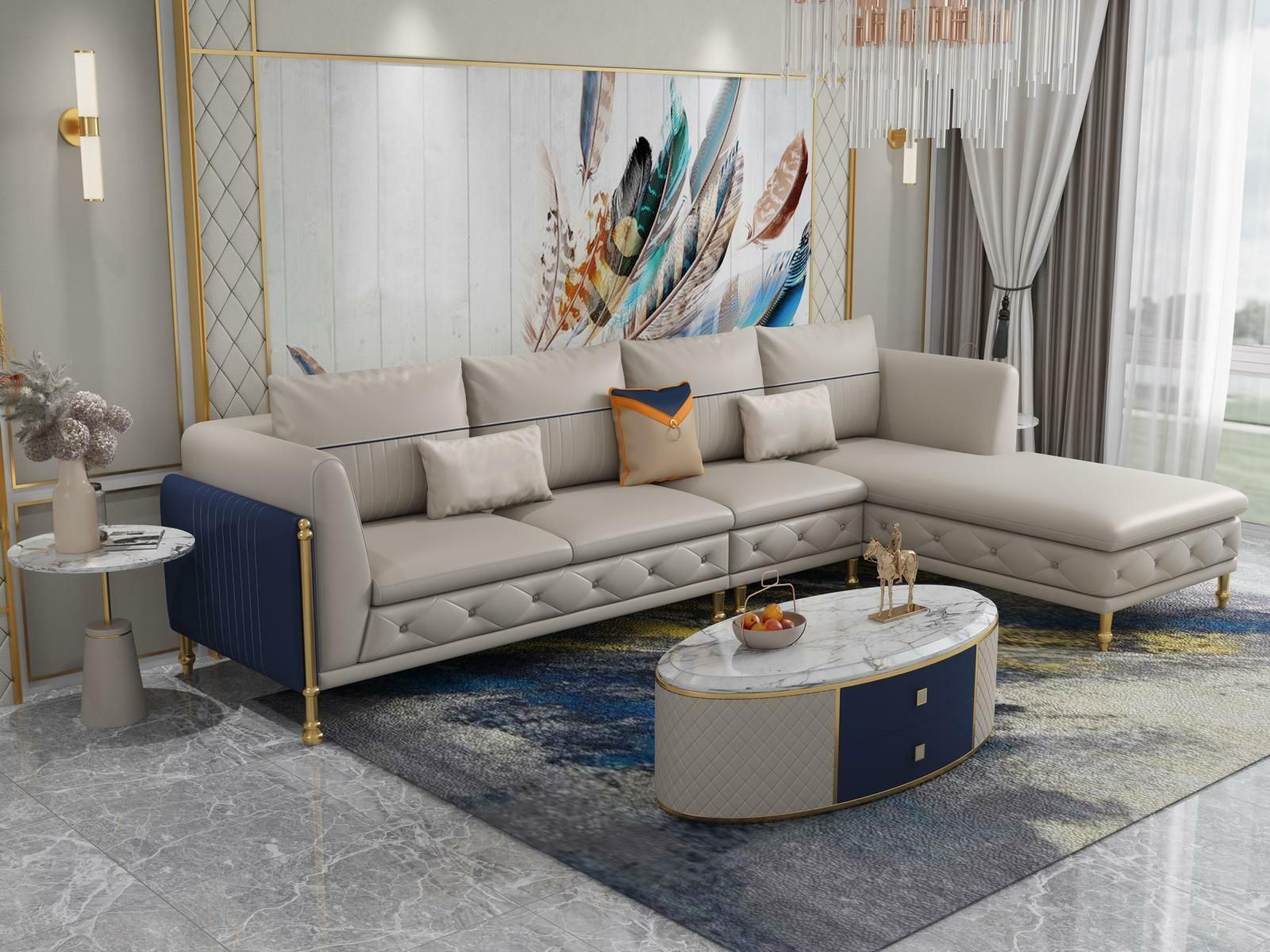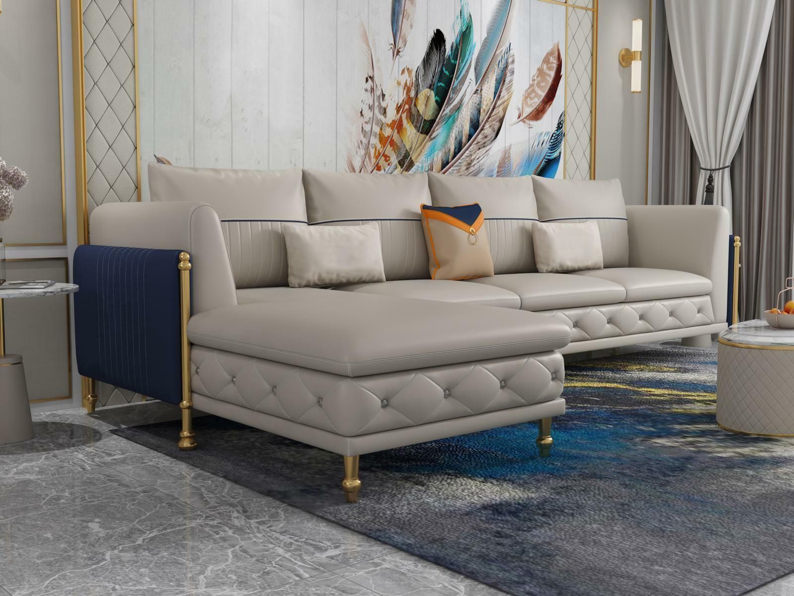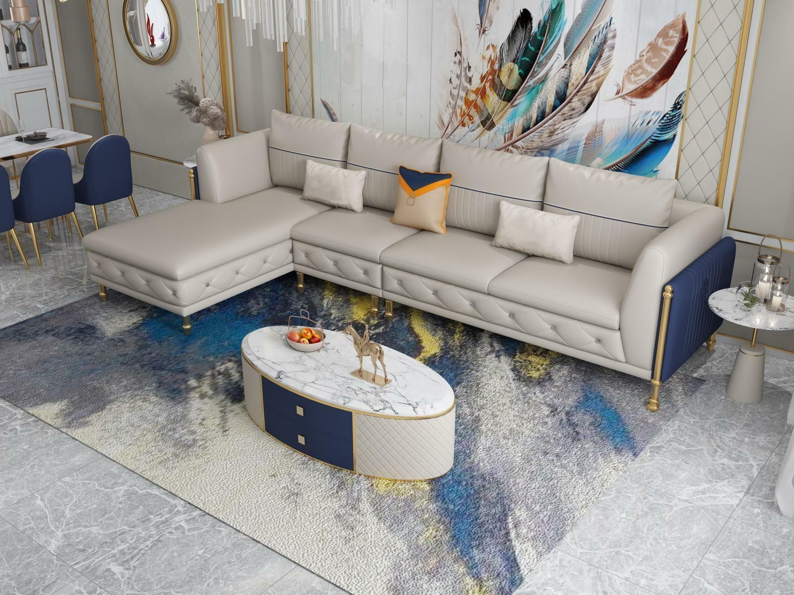 Luxuriöse Wohnzimmer Eckgarnitur Ecksofa Eckcouch Sofa Polster Ecke Couch Leder