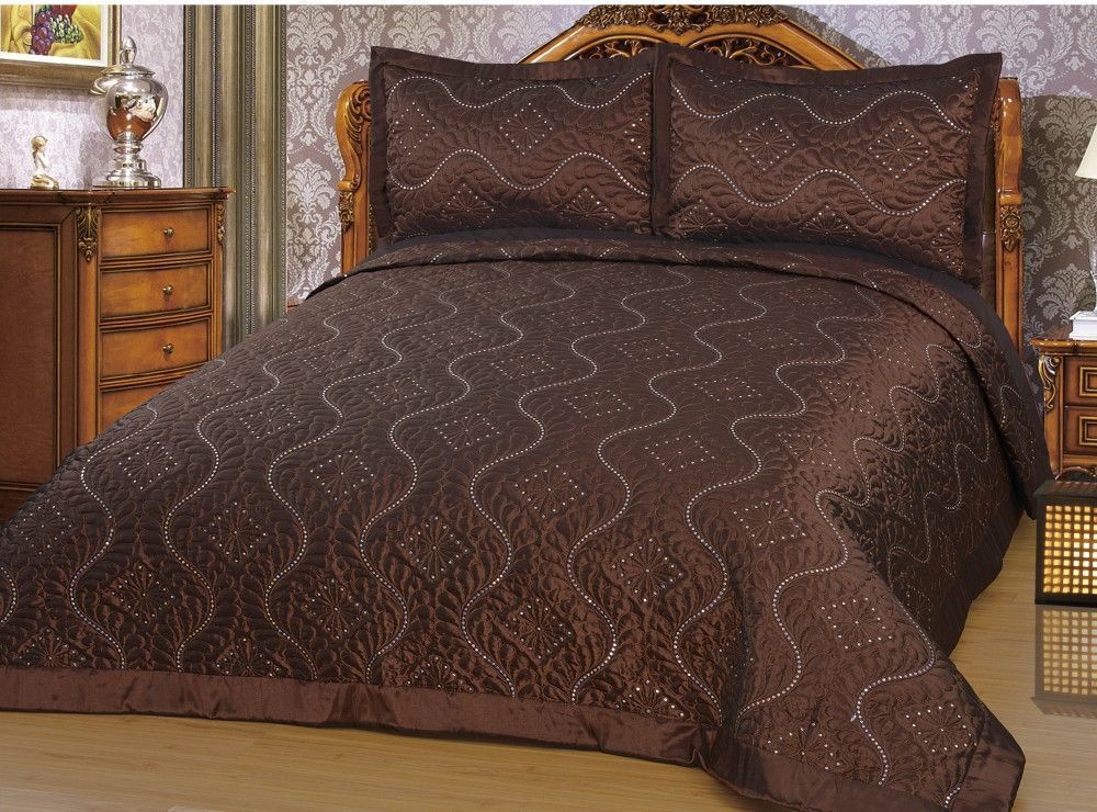 Luxuriöser Bettüberwurf Handarbeit, Satin Tagesdecke, braun