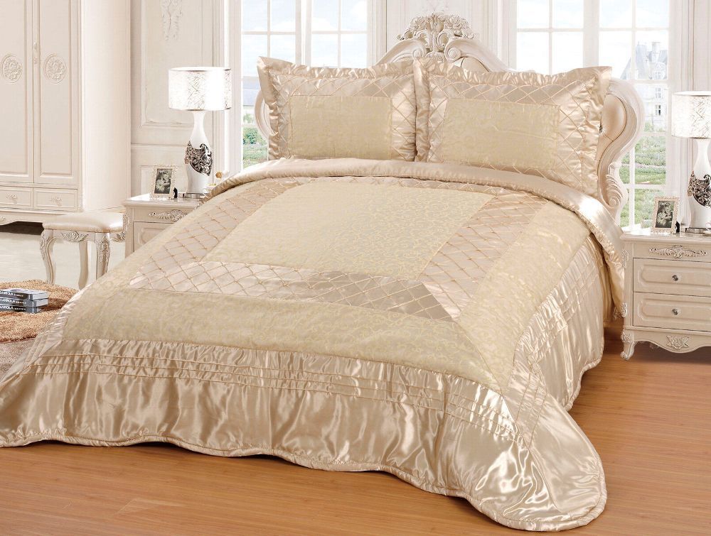 Luxuriöser Bettüberwurf Handarbeit, Satin Tagesdecke, ecru