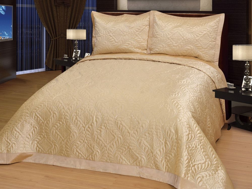 Luxuriöser Bettüberwurf Handarbeit, Satin Tagesdecke, gold