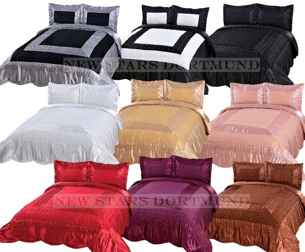 Luxuriöser Bettüberwurf Handarbeit, Satin Tagesdecke, grau