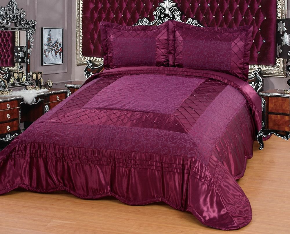 Luxuriöser Bettüberwurf Handarbeit, Satin Tagesdecke, lila