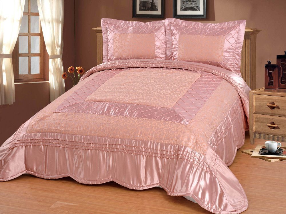Luxuriöser Bettüberwurf Handarbeit, Satin Tagesdecke, pink
