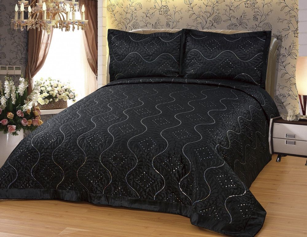 Luxuriöser Bettüberwurf Handarbeit, Satin Tagesdecke, schwarz