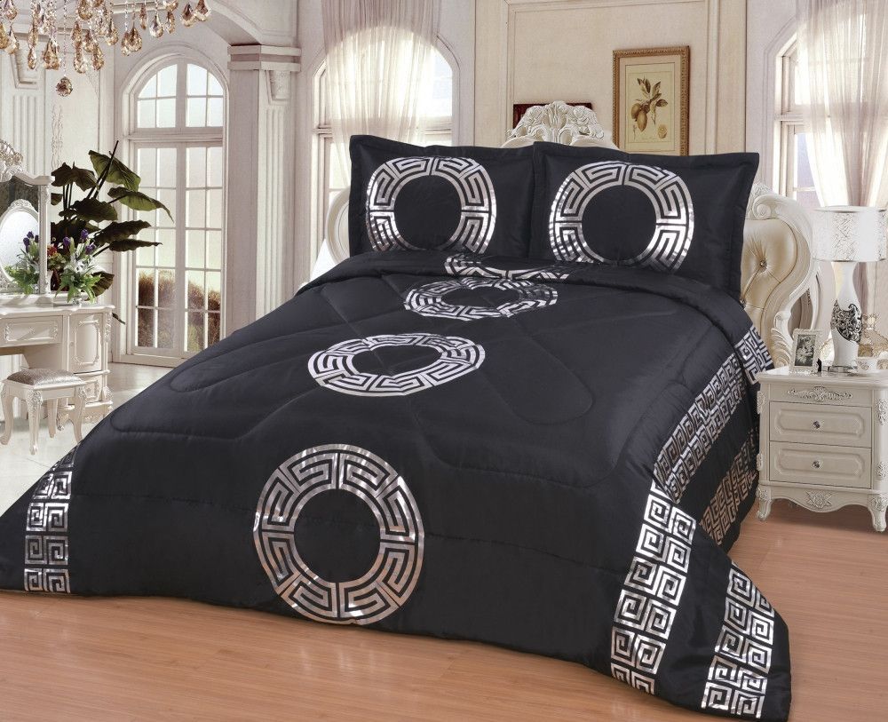 Luxuriöser Bettüberwurf Handarbeit, Satin Tagesdecke, schwarz