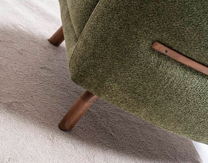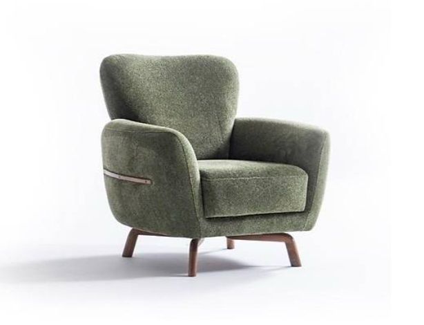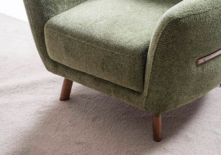 Luxuriöser Grüner Polstersessel Wohnzimmer Loungesessel Holzfüße