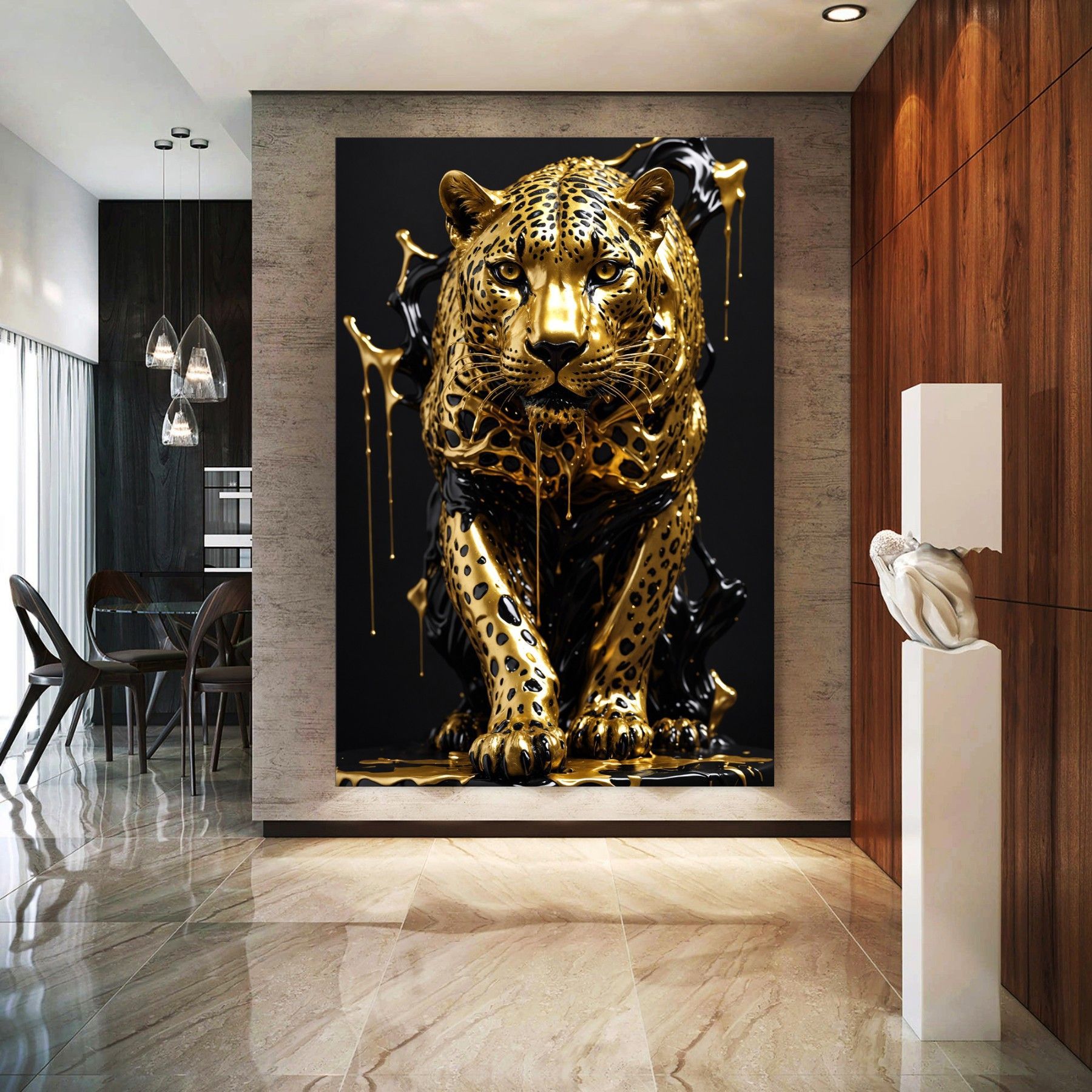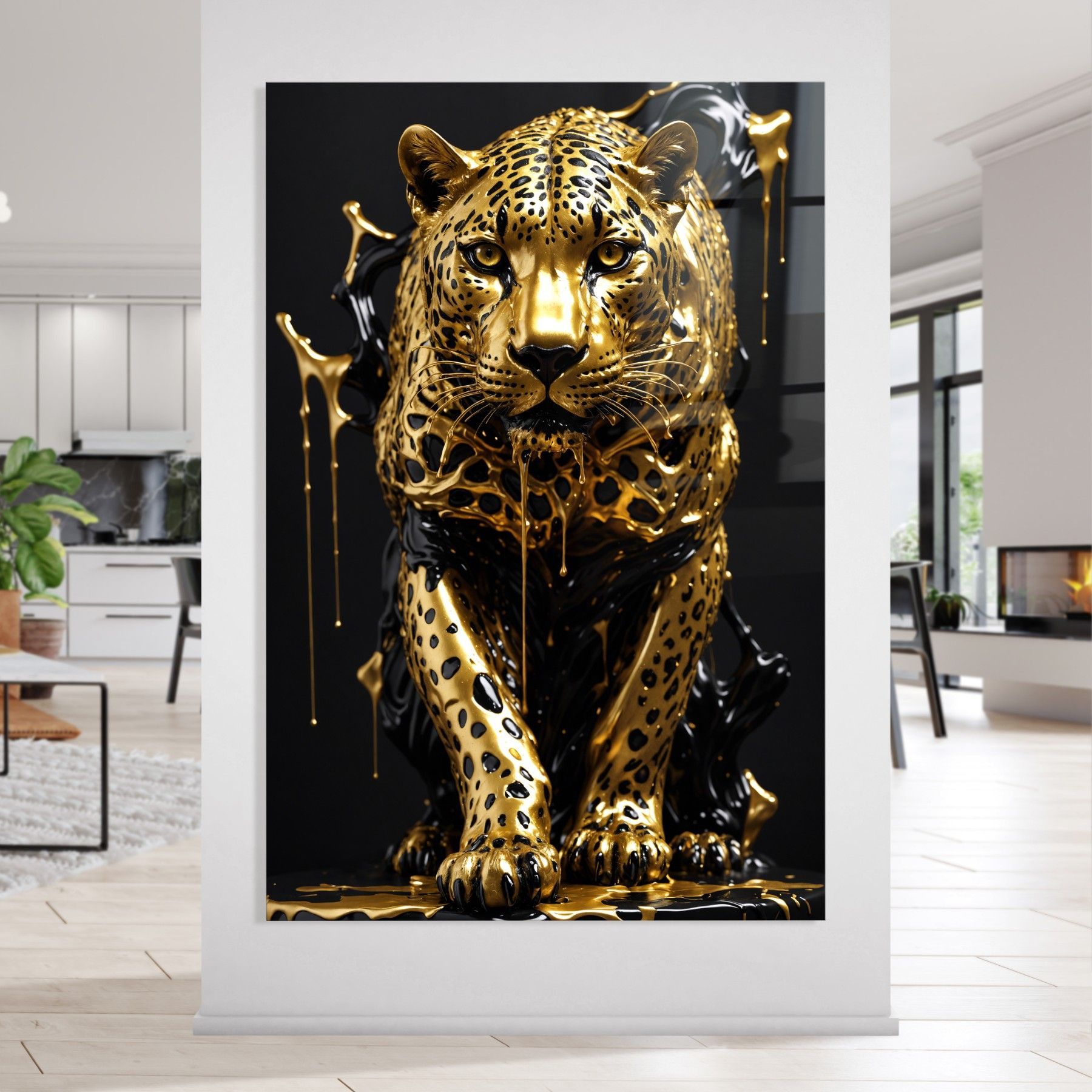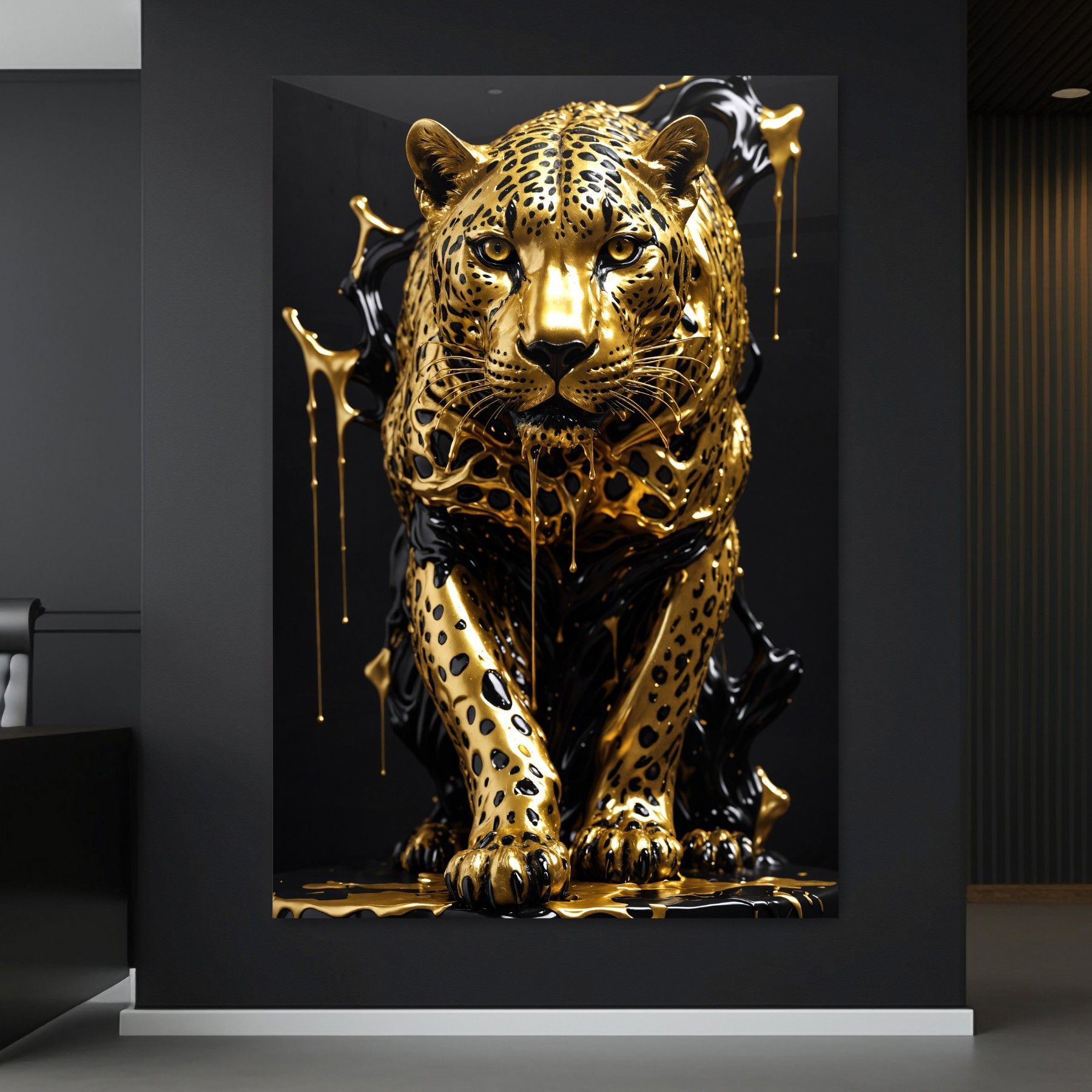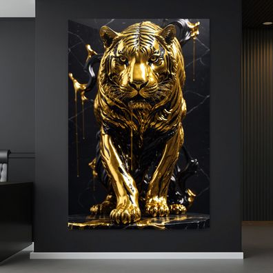 Luxuriöser Tiger in Gold Kunst Bild, Tier Wandbild Leinwand, Acrylglas oder Poster