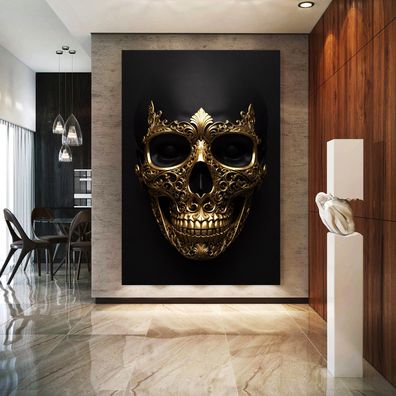 Luxuriöser goldener Totenkopf Maske, Kunst Bild, Wandbild Leinwand, Acrylglas, Poster