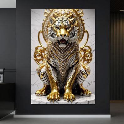 Luxuriöser Tiger in Gold Kunst Bild, Tier Wandbild Leinwand, Acrylglas oder Poster o2