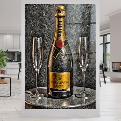 Luxuriöse Champagnerflasche Kunst Bild, Wandbild Leinwand, Acrylglas, Poster