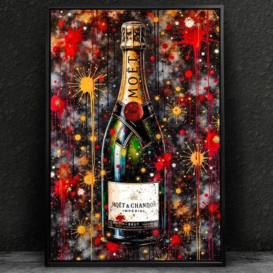 Luxuriöse Champagnerflasche Kunst Bild, Wandbild Leinwand, Acrylglas, Poster v1