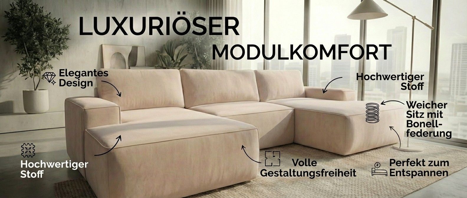 Luxuriöses modulares Ecksofa mit Schlaffunktion und Bettkasten EINAR