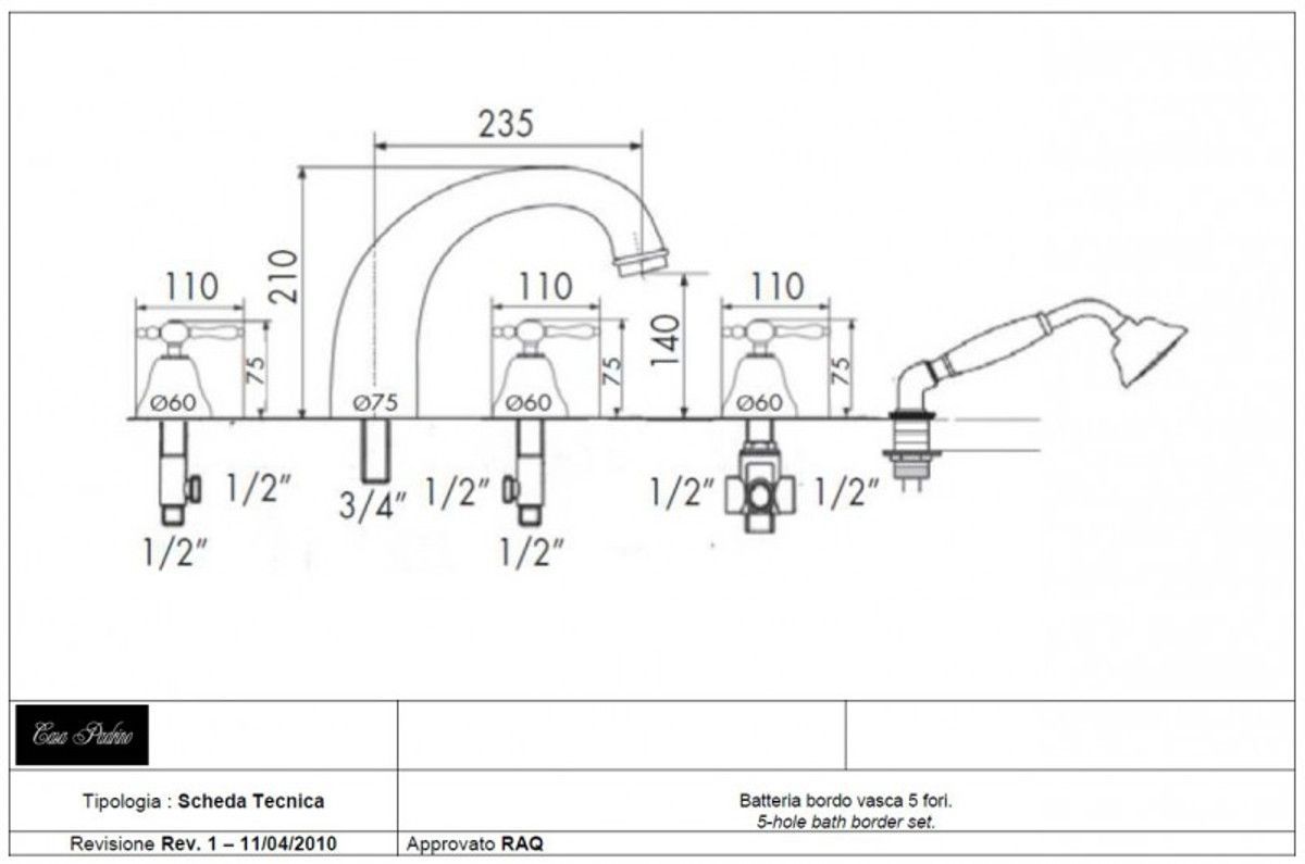 Luxus Bad Zubehör - Jugendstil Retro 5 Loch Wannen Kombination Chrom Serie Milano - M