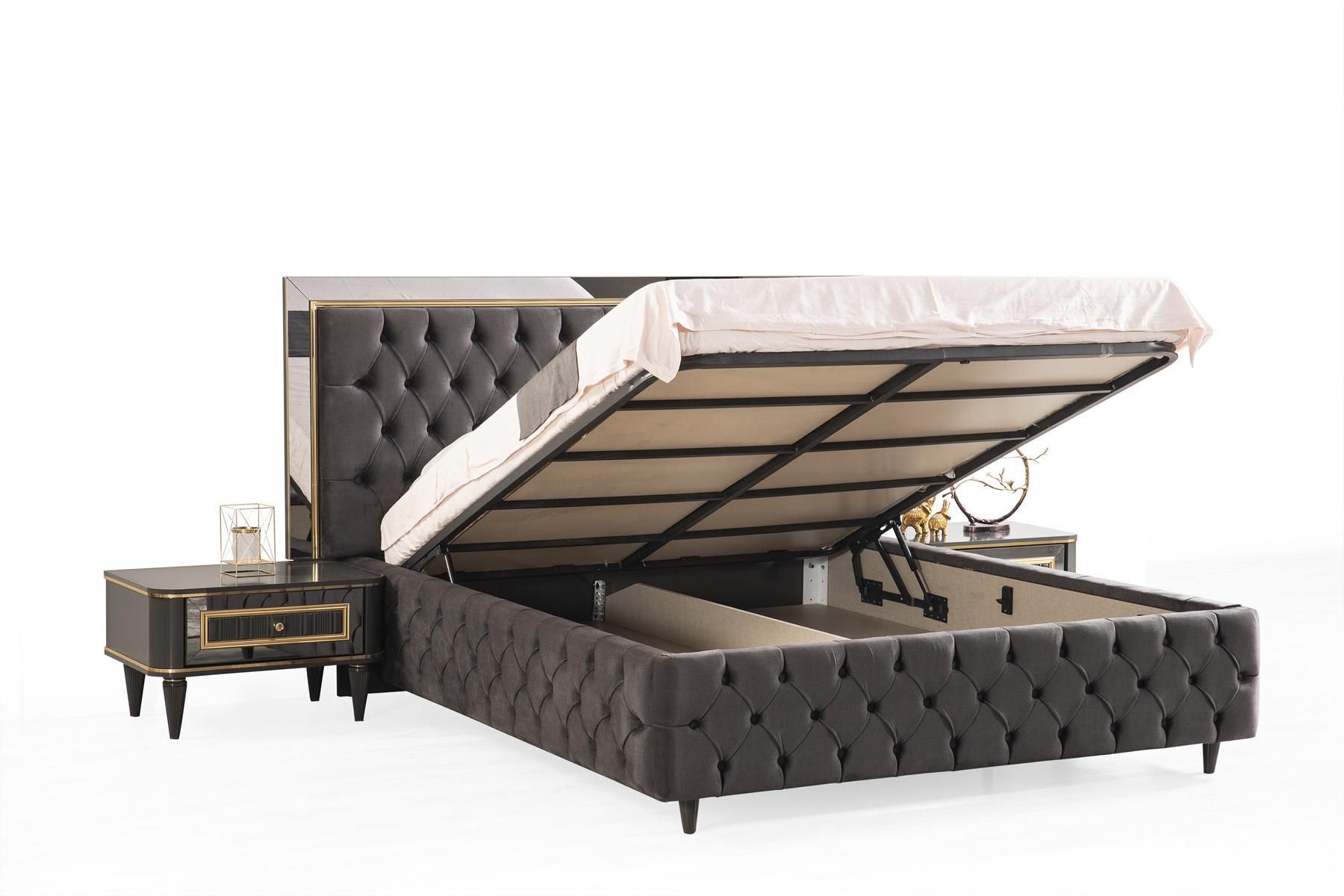 Luxus Chesterfield Bett mit Edelstahl Rahmen Edle Betten Schwarze Textil