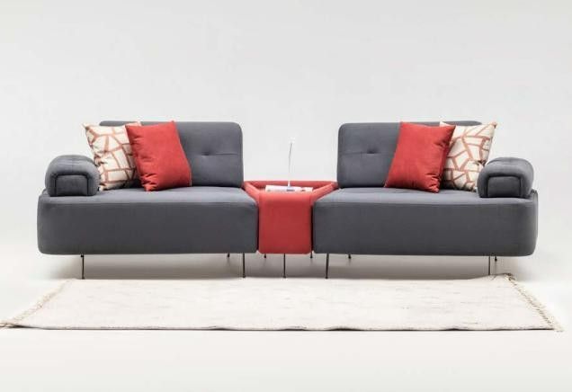 Luxus Couch Stoffsofa Sofa 2 Sitzer Zweisitzer Grau Polstersofa Tisch