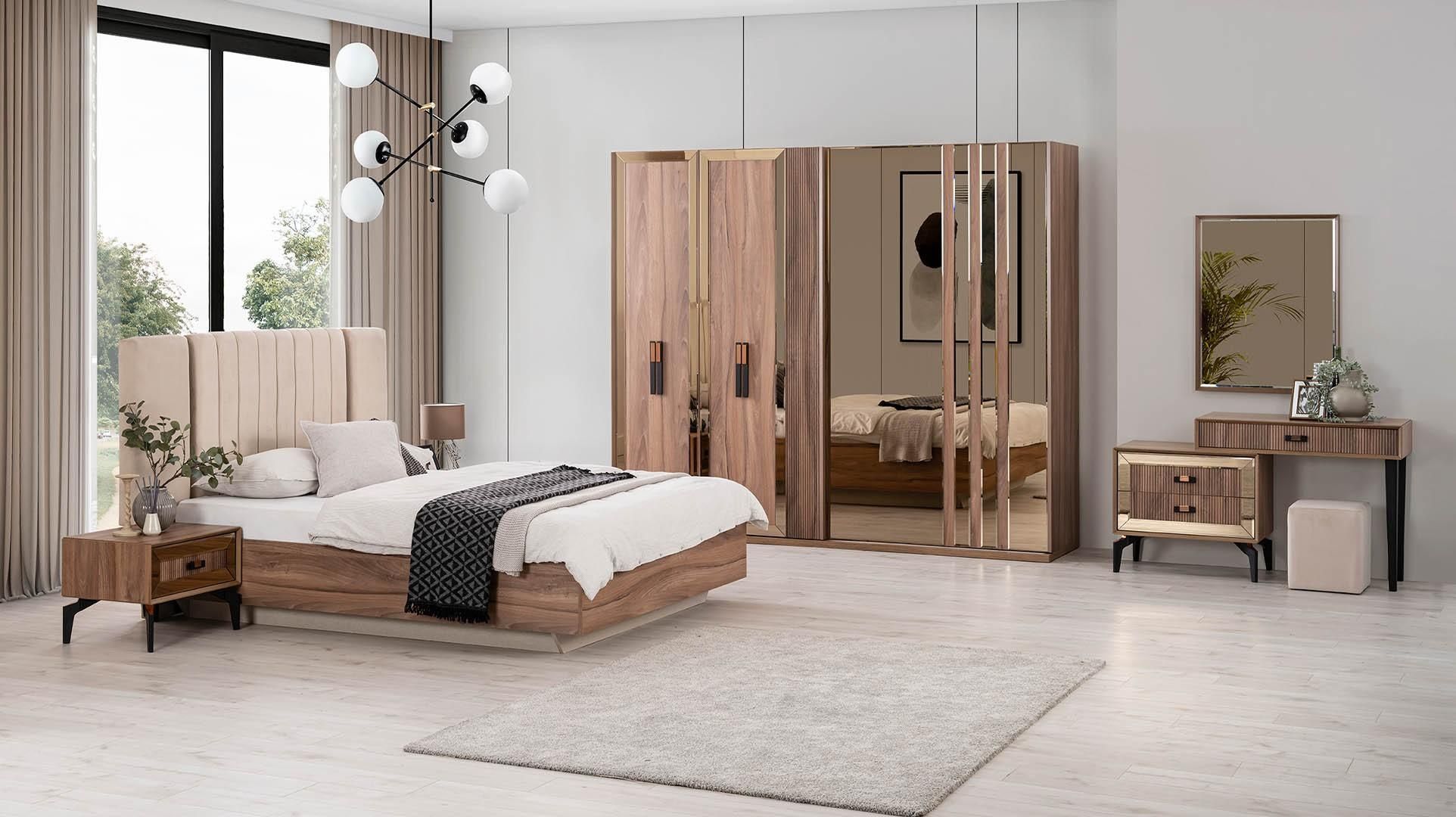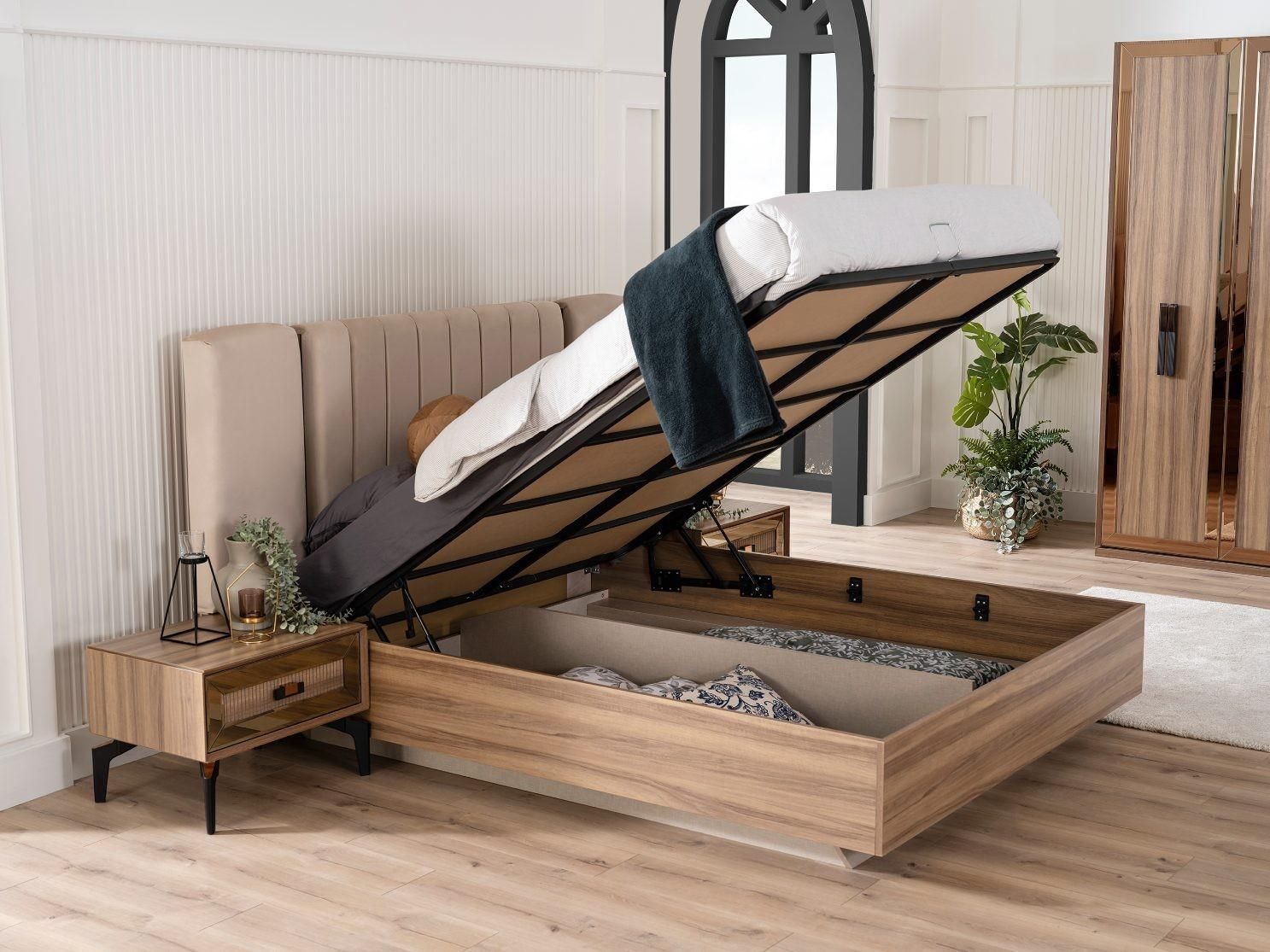 Luxus Doppelbett Schlafzimmer Garnitur Bett Holz Set 7tlg Braun Modern
