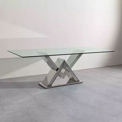 Luxus Esstisch Säulentisch Silber Esstische Esszimmer Tisch Glastisch