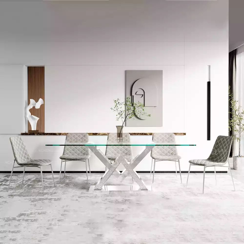 Luxus Esstisch Säulentisch Silber Esstische Esszimmer Tisch Glastisch