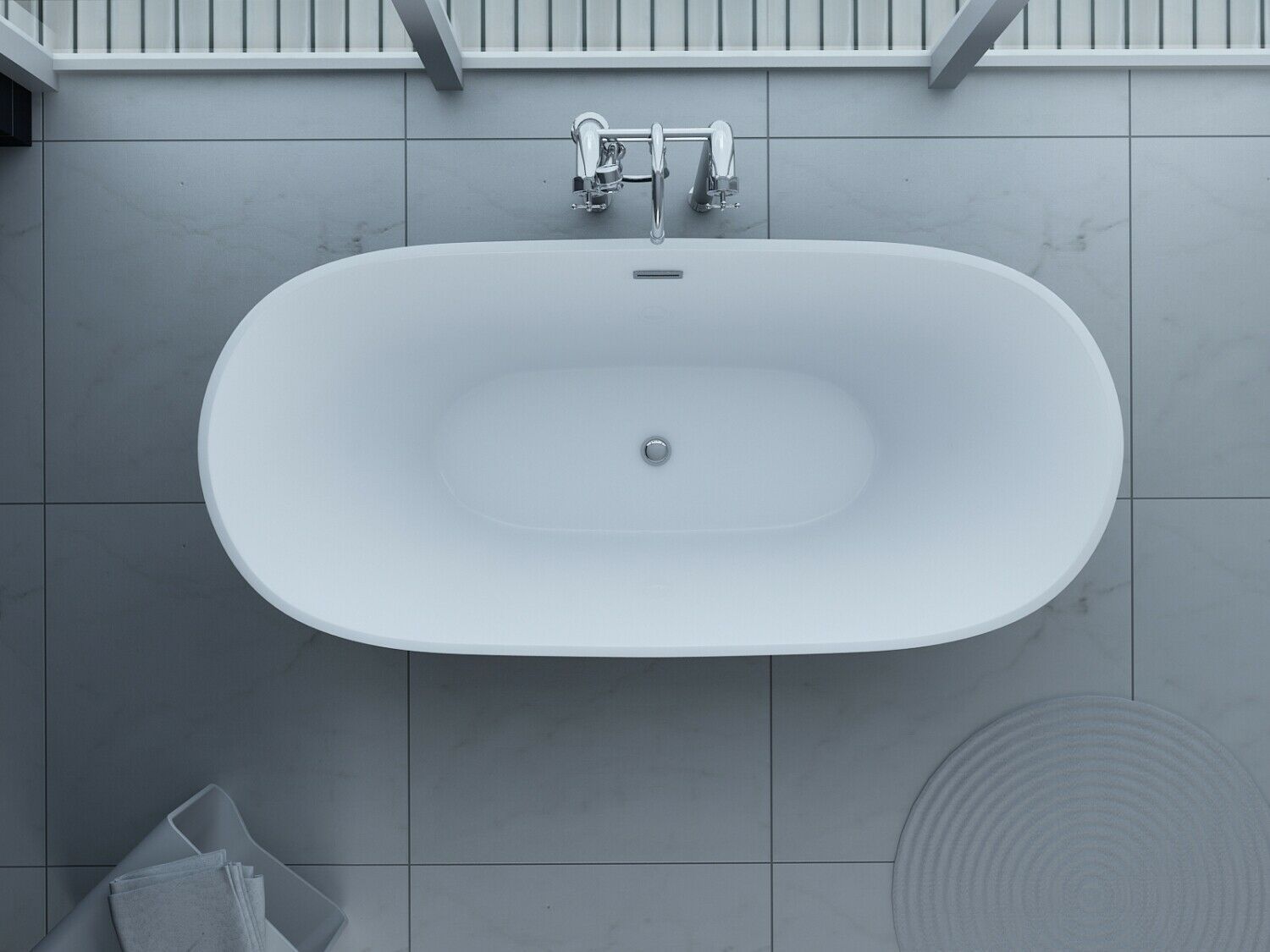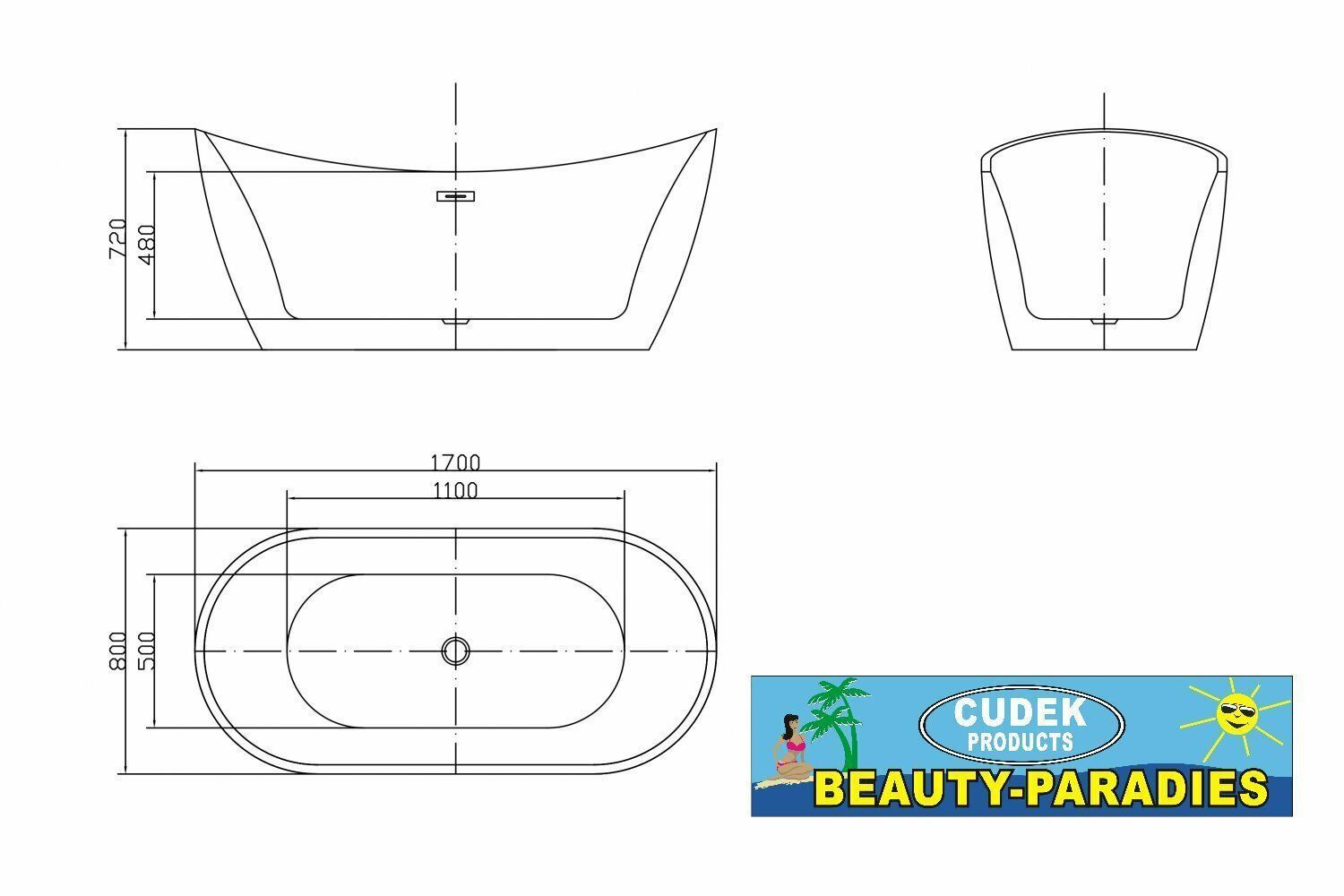 Luxus freistehende Badewanne 170 cm Designer Acrylwanne-Wanne + Ablauf Überlauf
