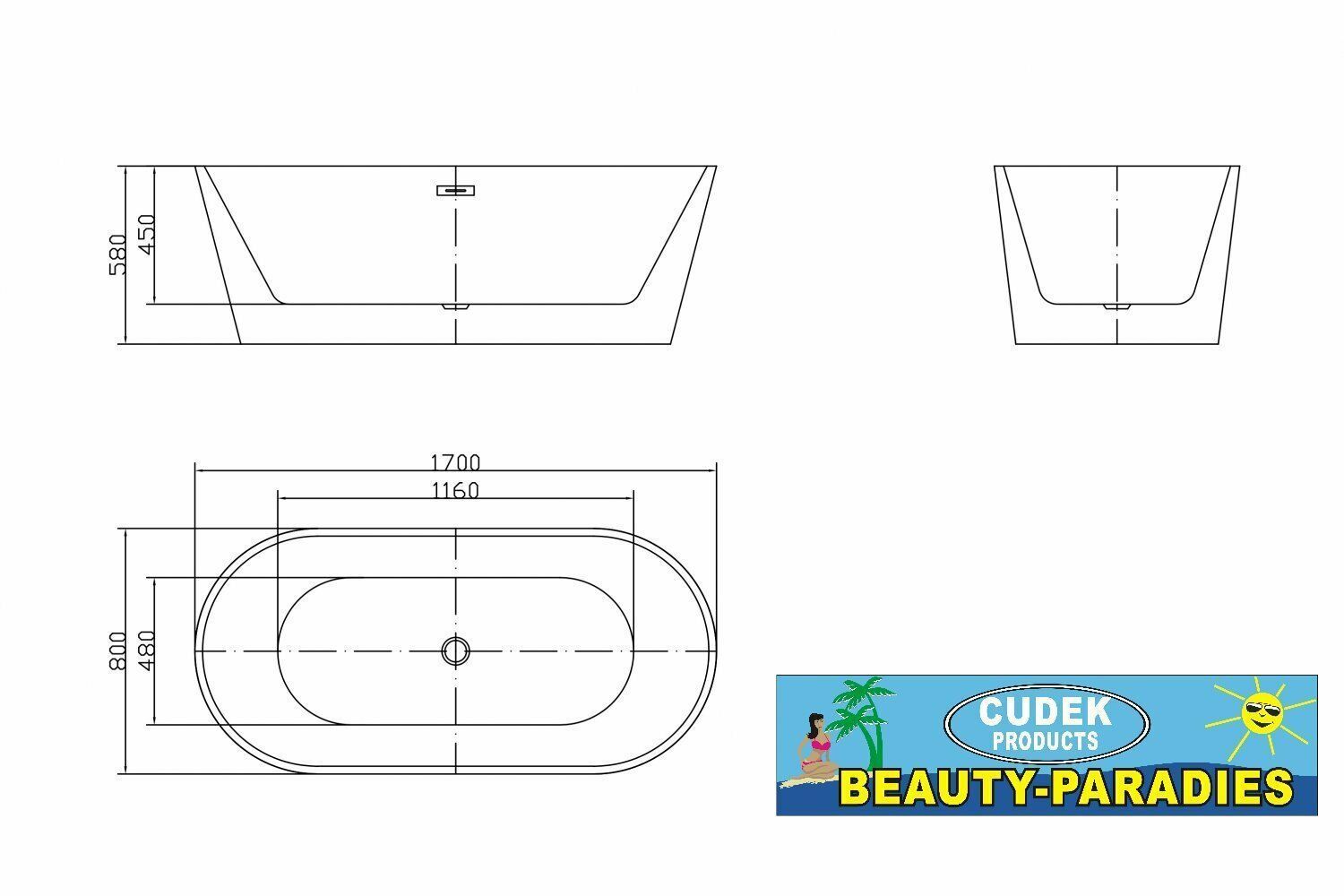 Luxus freistehende Badewanne 170 Designer Acrylwanne Wanne inkl. Ablauf Überlauf