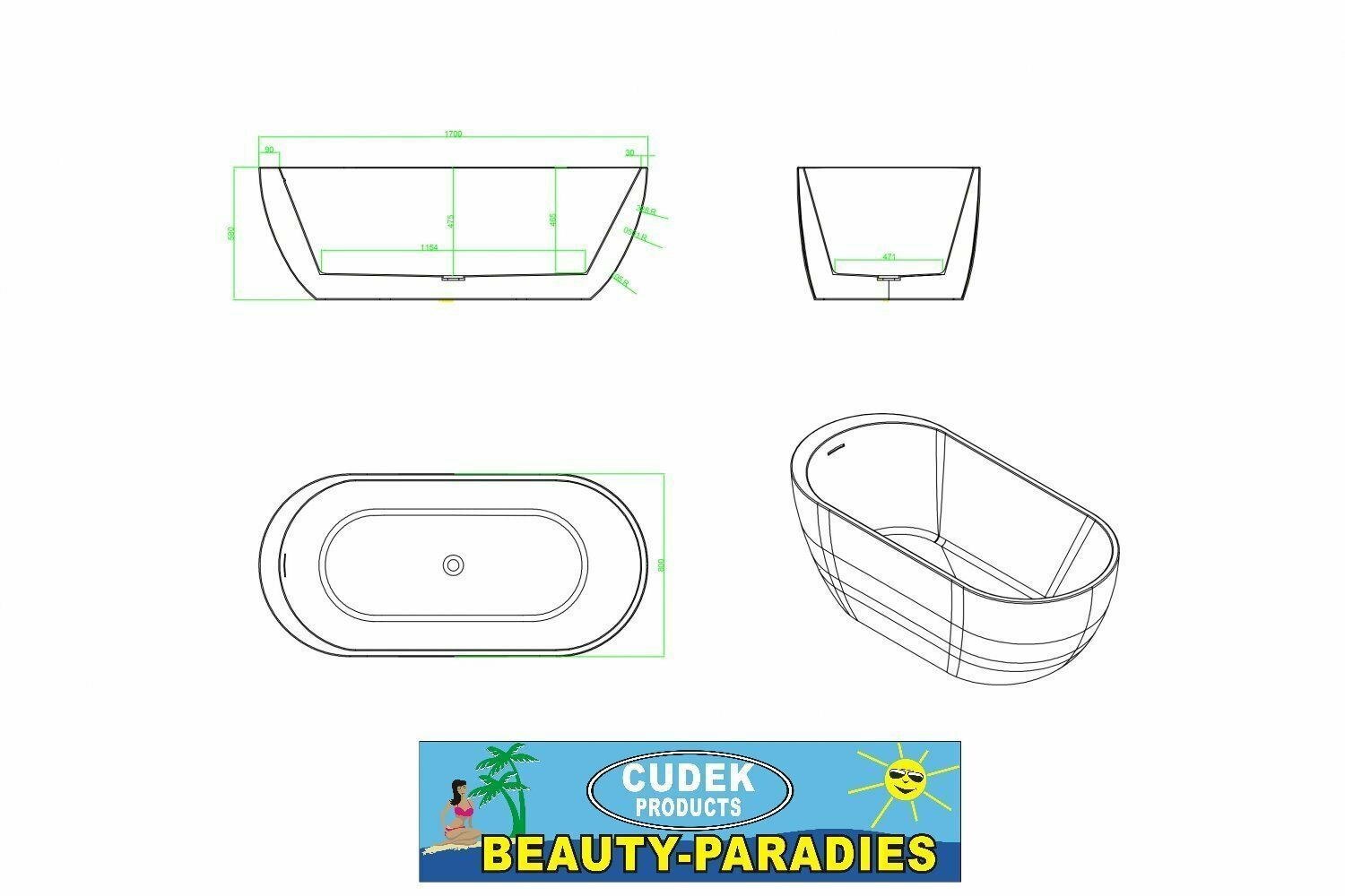 Luxus freistehende Badewanne 170 Designer Acrylwanne Wanne mit. Ablauf Überlauf