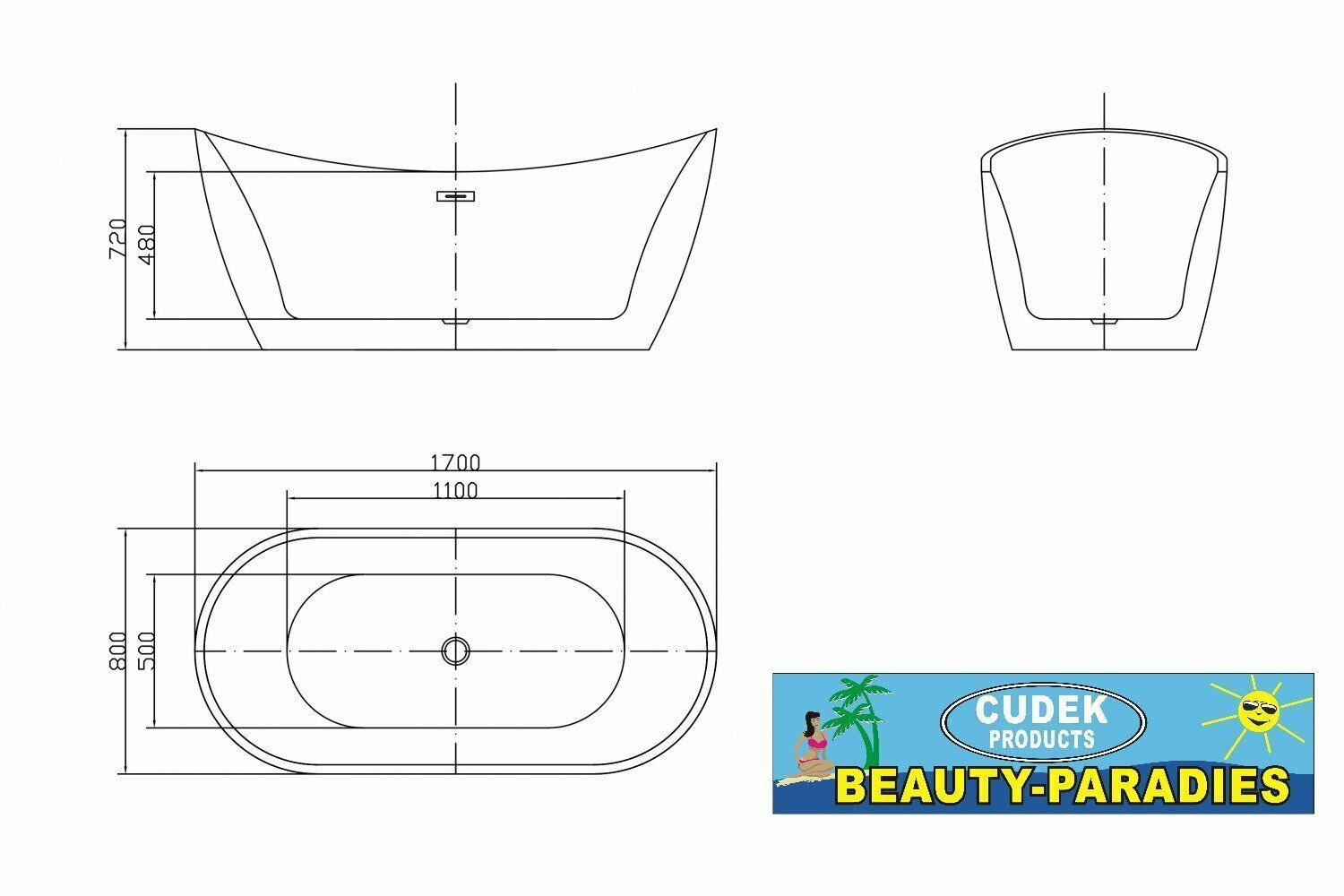 Luxus freistehende Badewanne 170cm / 80cm Designer Acrylwanne-Wanne