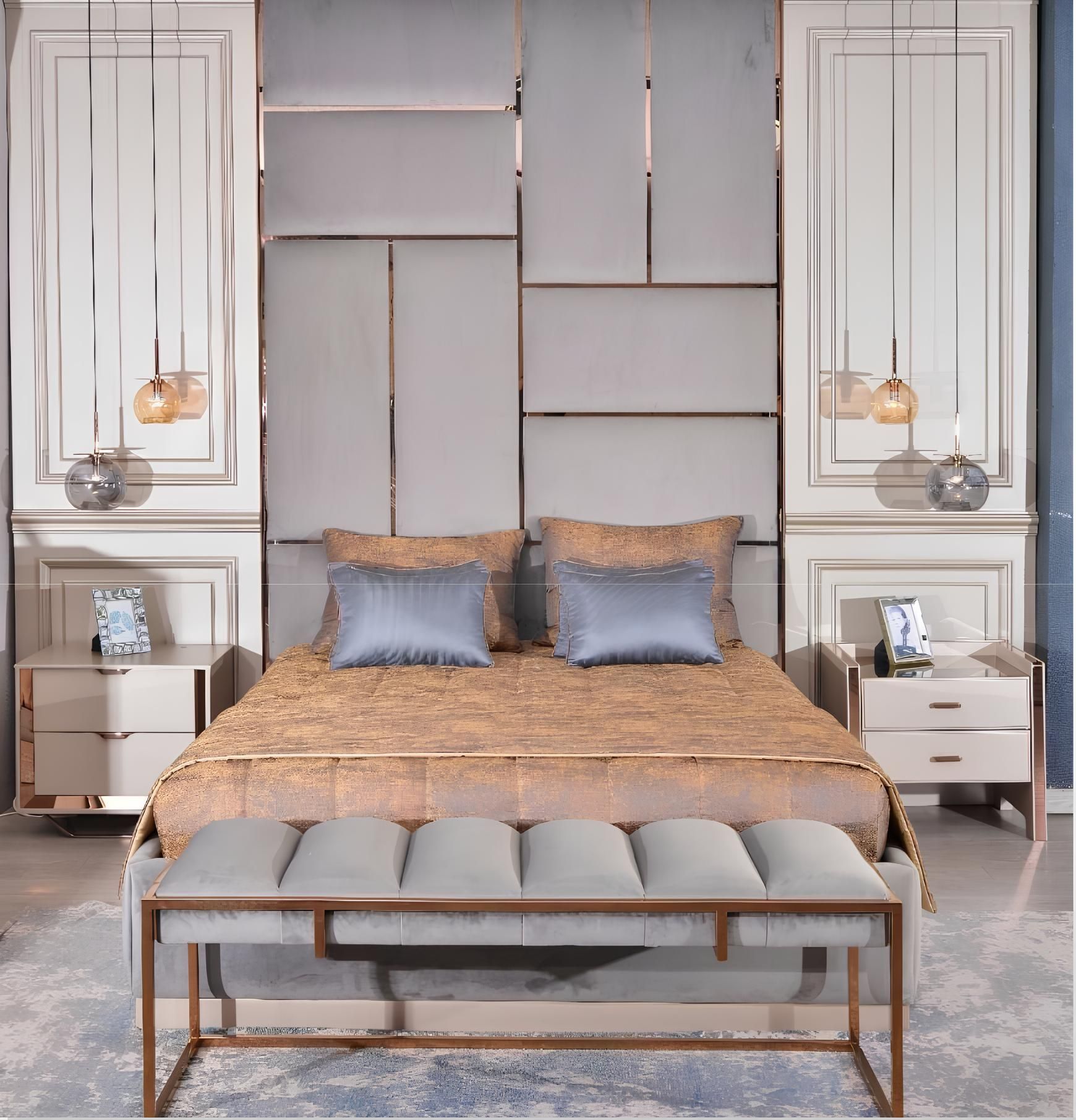 Luxus Garnitur Schlafzimmer Doppelbett Bett Nachttische Set 5tlg Beige