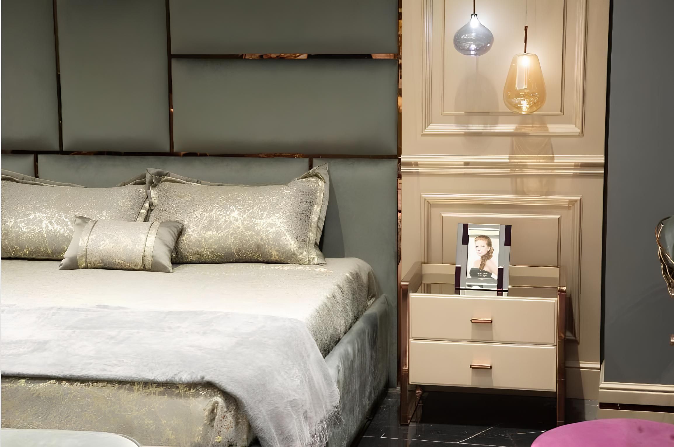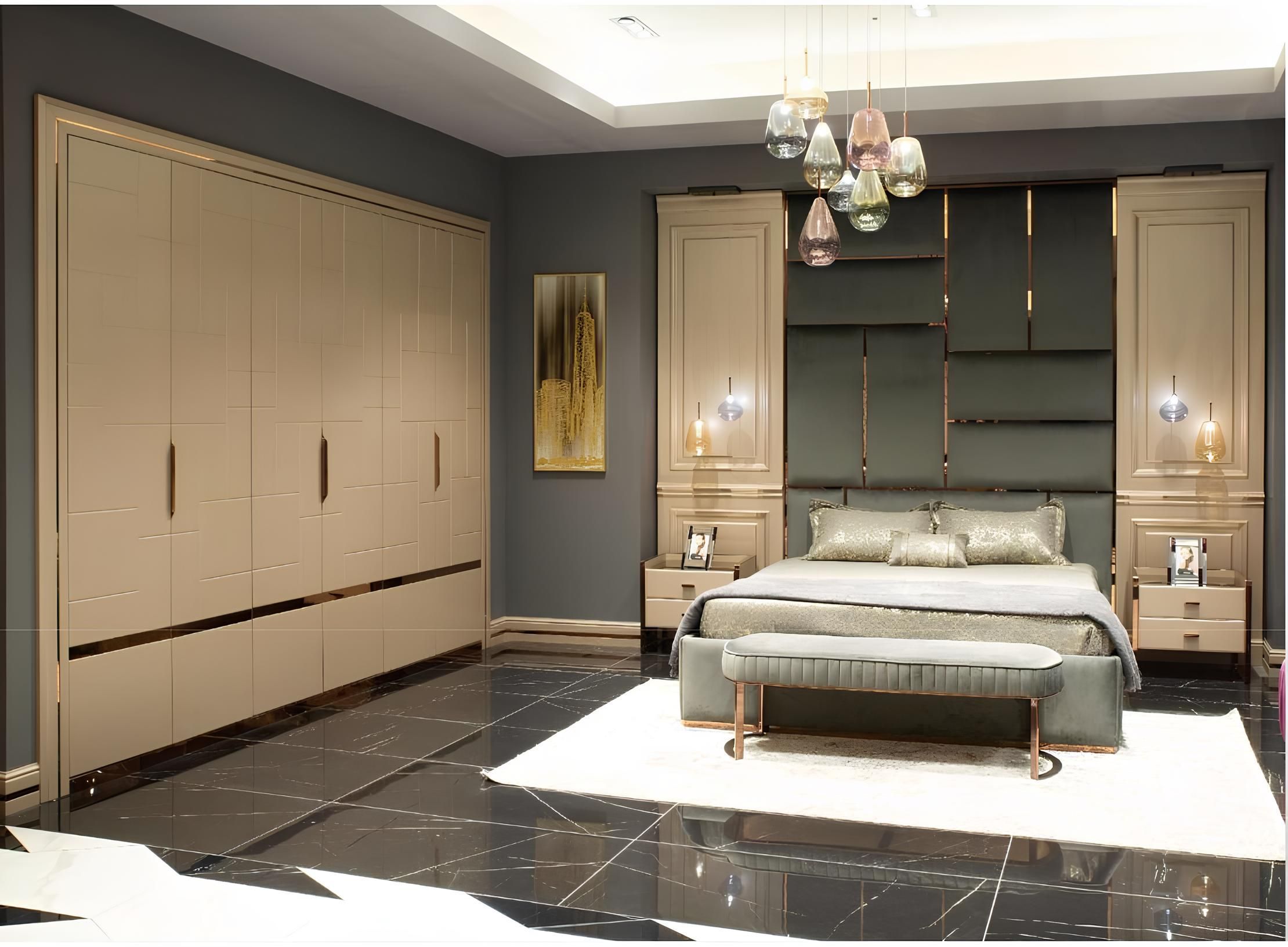 Luxus Garnitur Schlafzimmer Doppelbett Bett Nachttische Set 6tlg Beige