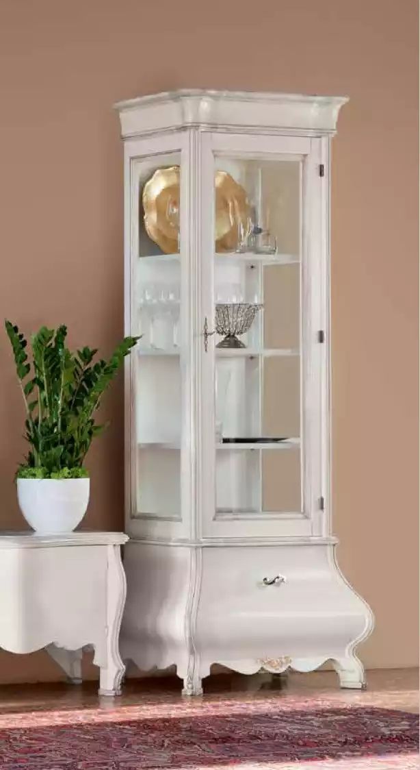 Luxus Holzschrank Design Vitrine weiß Italienisch Möbel Schrank Vitrinen