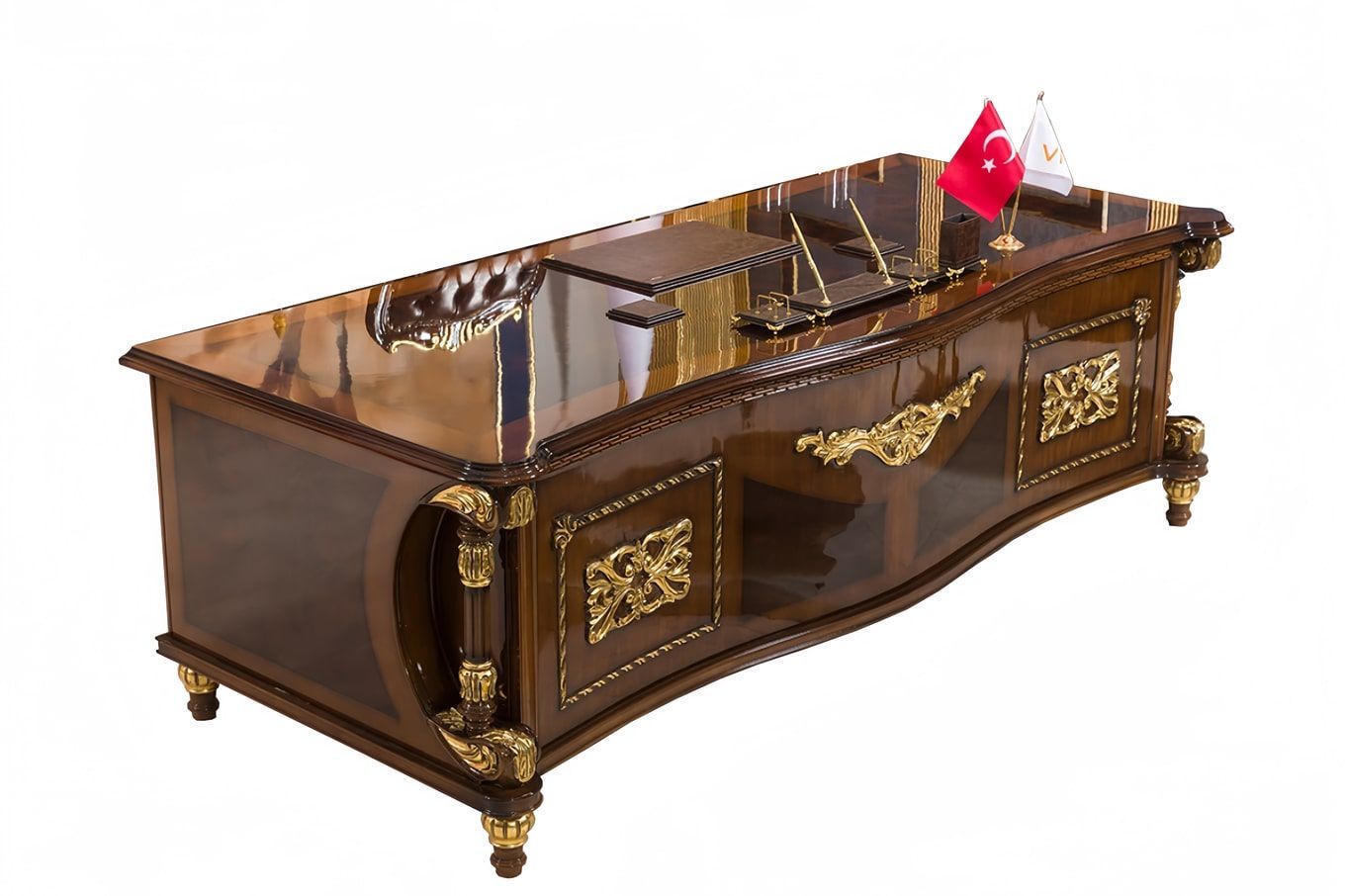 Holz Möbel Luxus Büro 2tlg Set Schreibtisch Sessel Italienische Möbel Barock Neu