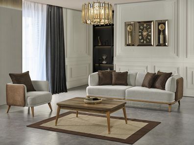 Dreisitzer Couch Luxus Möbel Sofa Couchen Holz Couchtisch 2tlg. Set Möbel
