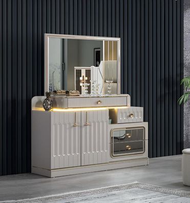 Luxus Kommode mit Spiegel Schlafzimmer möbel stil weiß Sideboard Möbel